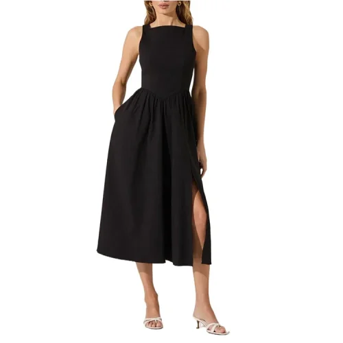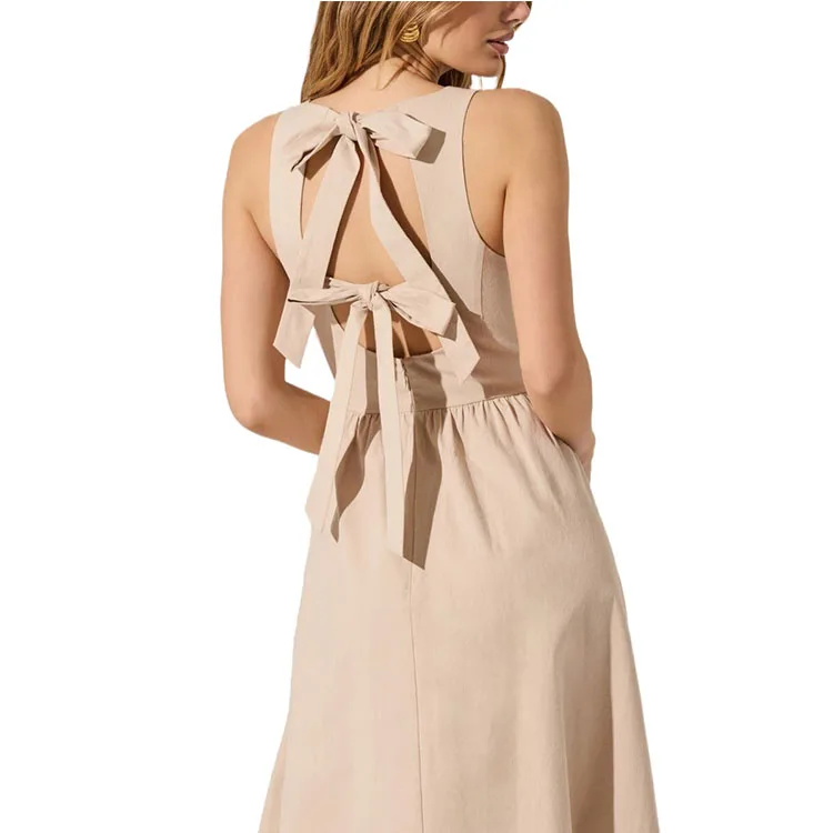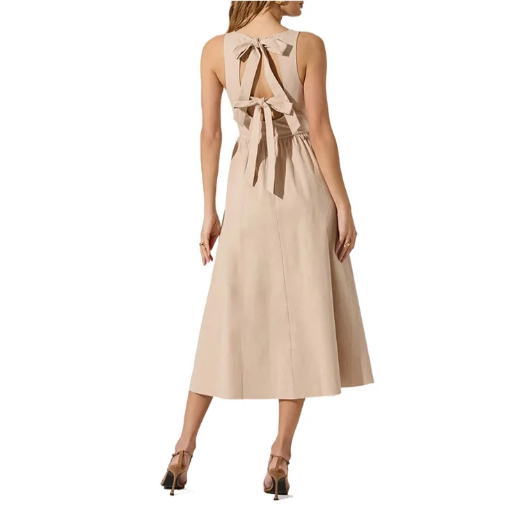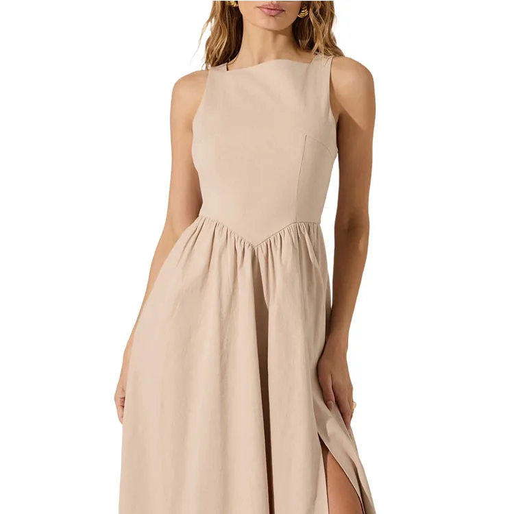 Casual Sleeveless Dress High Quality Elegant Fashion Natural Waistline Woven Pattern Solid Pattern
