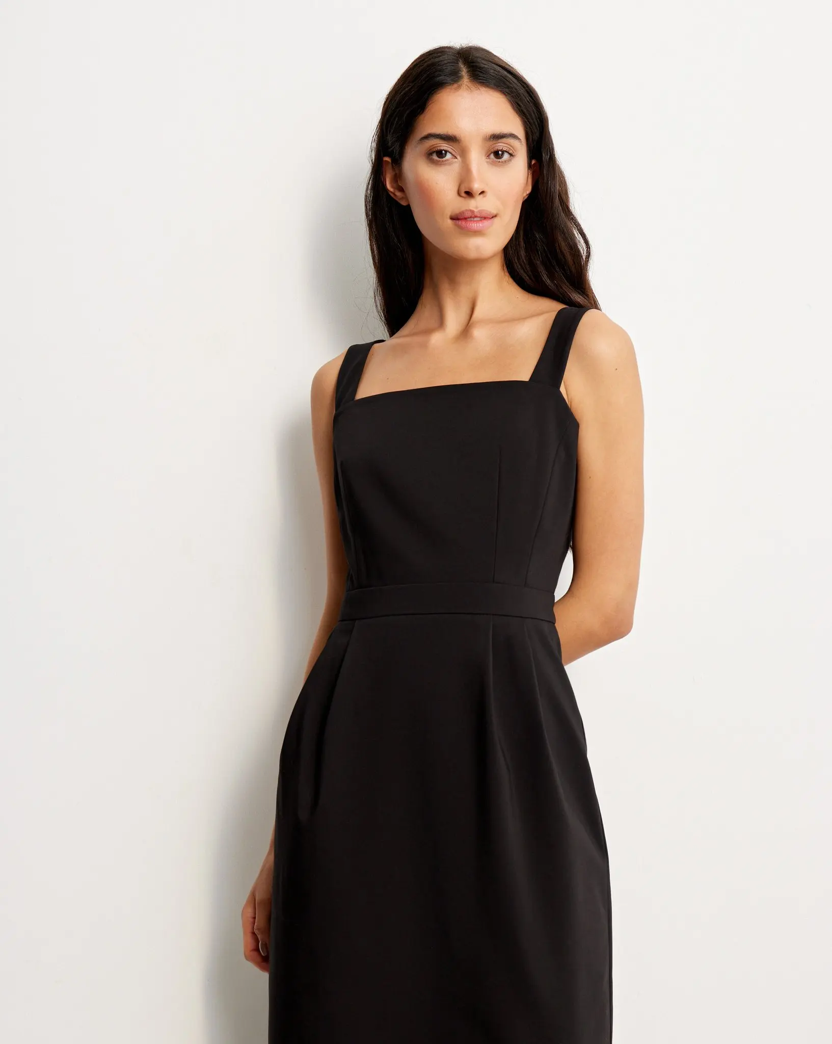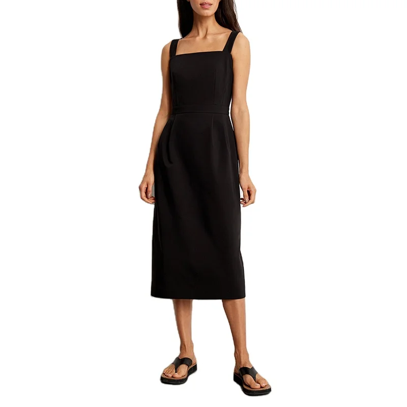 Casual Summer Sleeveless High Waist Plain Sheath Sundress Midi Dress for Women