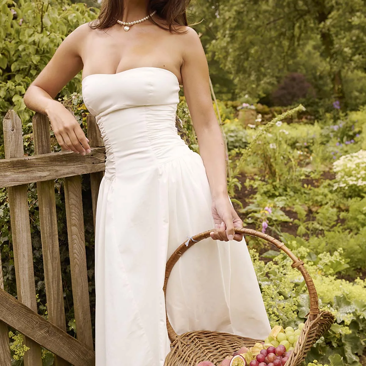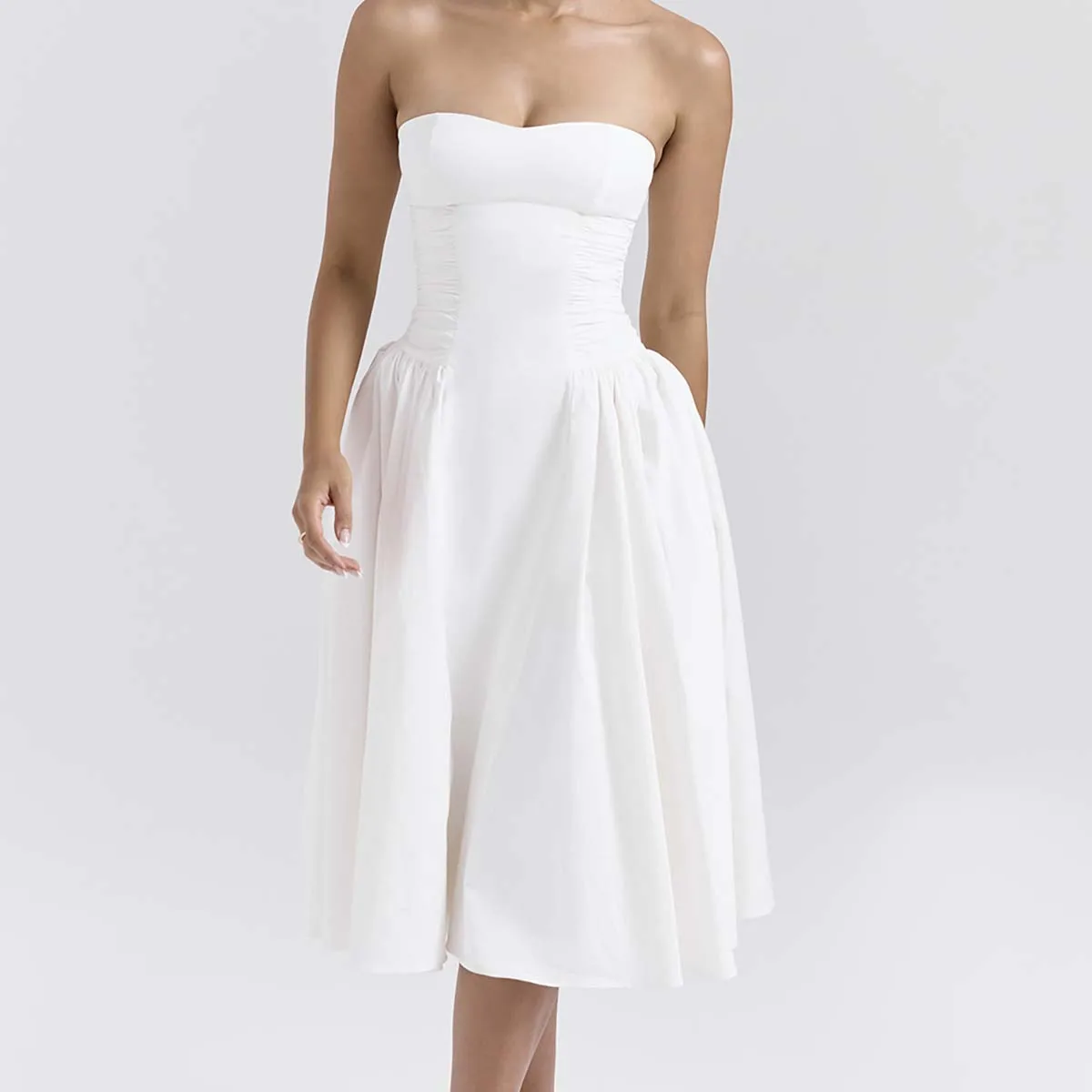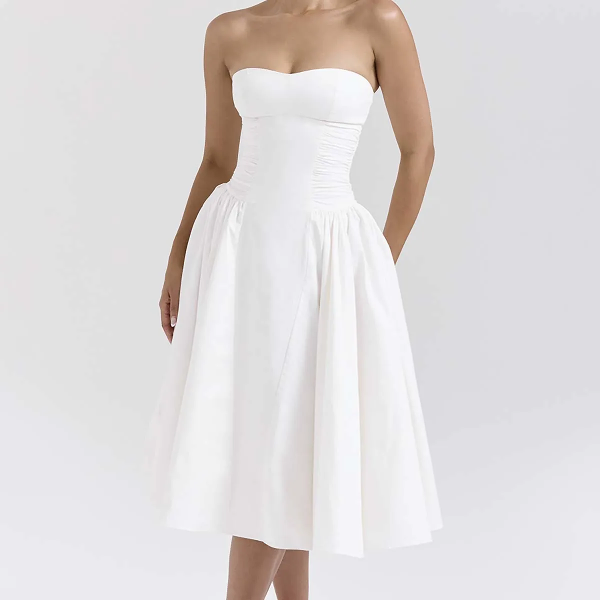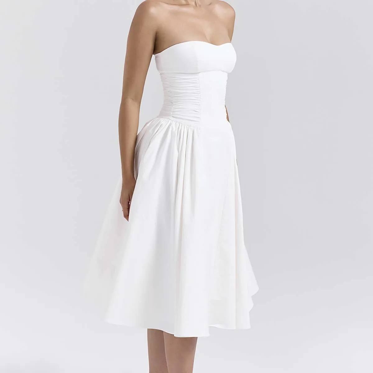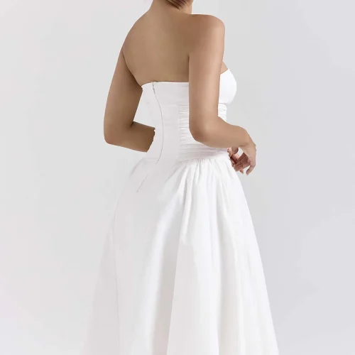 Product Name: Charming White Cotton Strapless Midi Sundress Perfect for Warm Days Women Clothing