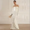 Chic Hanging Neck Rhinestone Evening Dress Oversized Fishtail Long Dress for Women