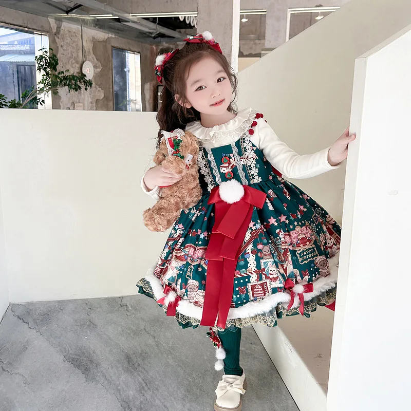 Product Name: Christmas Lolita Girl Dress Little Princess’s Long Western-Style Cotton Sling Dress Short Sleeves Bow Decoration Summer Parties