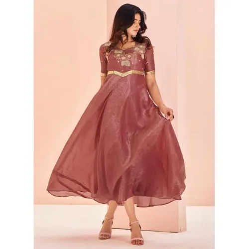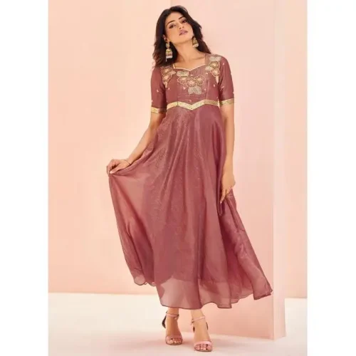 Product Name: Coral Hand Work Formal Party Wear Elegant Sequined Organza Evening Dress Special Design for Western Occasions Ready-Made