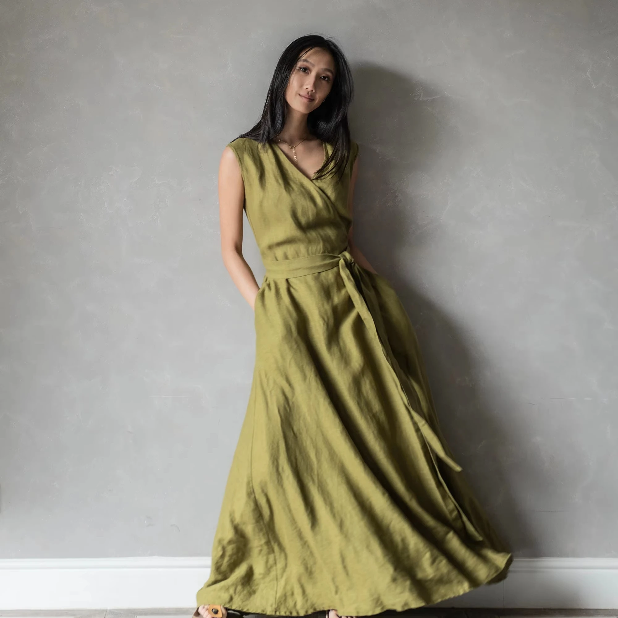 Costume Manufacturer Women’s Linen Print Spring Summer Elegant Sleeveless Women’s Dress Fashion Casual Loose Maxi
