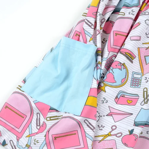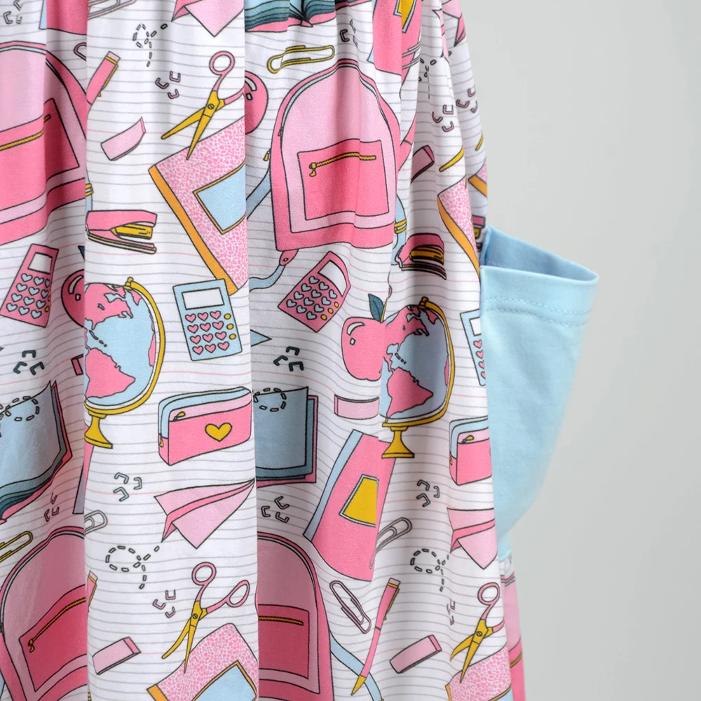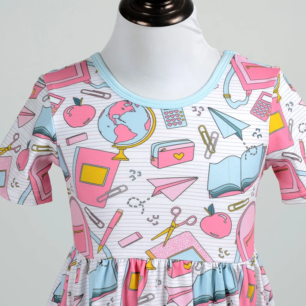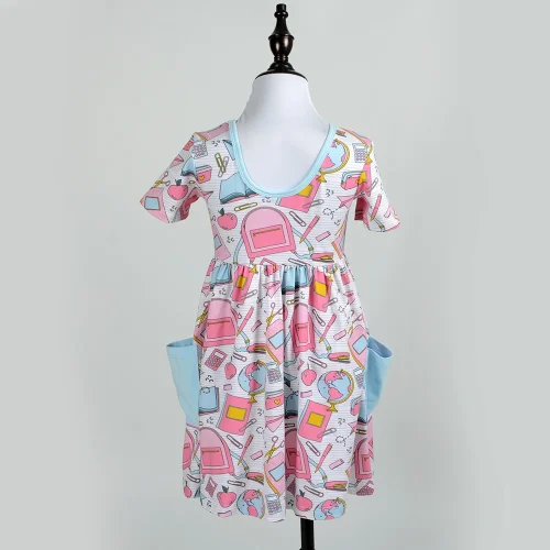 Cotton Spandex Short Sleeve Floral Midi Dress for Little Girls Summer Style with Neck Side Pockets Printed Design Model New