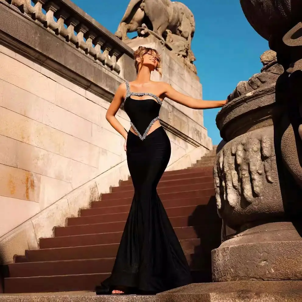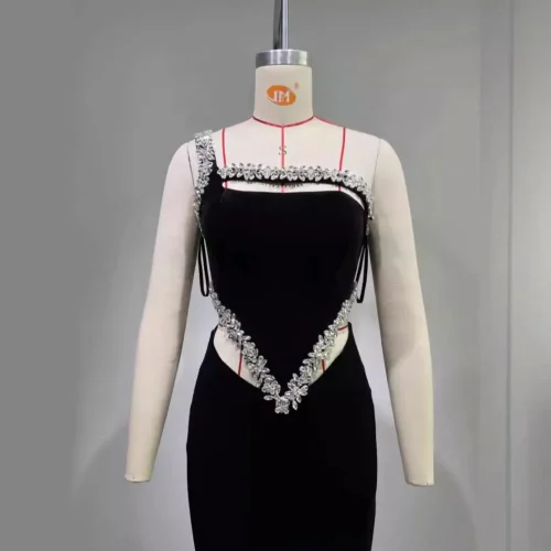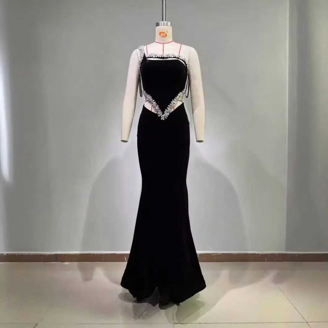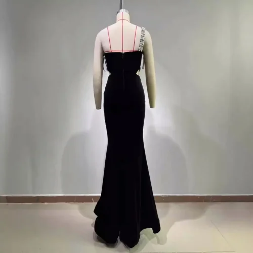 Product Name: Cross-Border Foreign Trade Luxury Diamond-Embedded Sexy Cutout One-Shoulder Velvet Dress Socialite High-End Party Dinner Dress