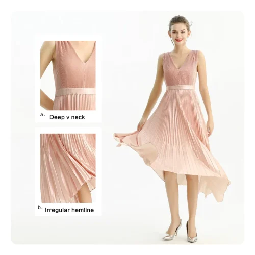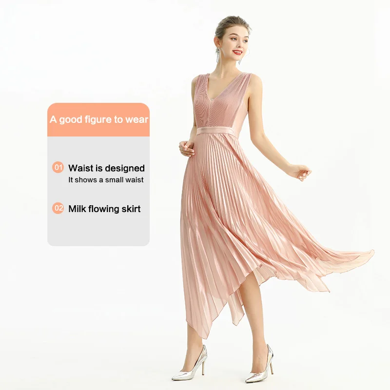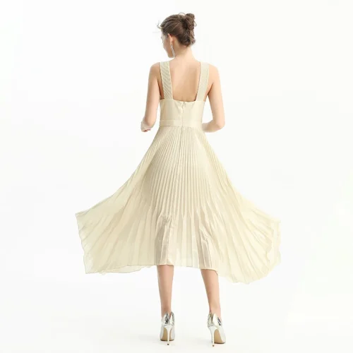 D205 Fall High Quality Fashion Elegant Asymmetric Strap Pleated Midi Long Party Formal Evening Casual Dress