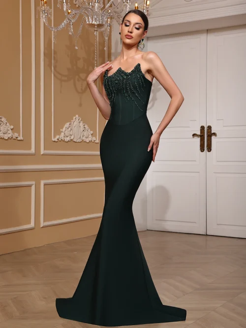 Dark Green Vintage Style Floor Length Fishtail Bandage Classy Elegant Party Dresses for Women