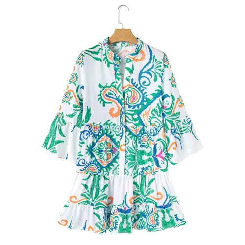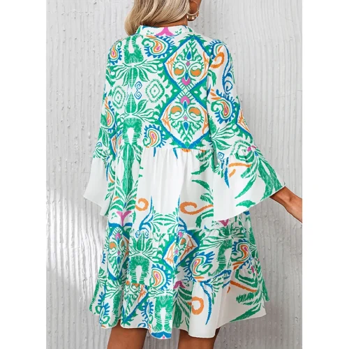 Product Name: Dear-Lover US Warehouse No Import Charges Bohemian Tribal Bracelet Sleeve Buttoned Mini Dresses Women Lady Elegant