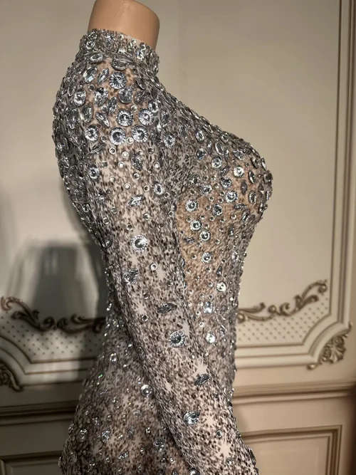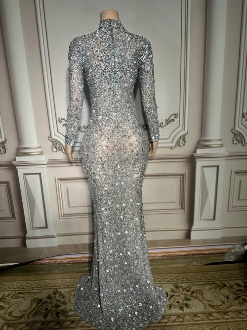 Product Name: Diamonds Evening Dress Elegant Long Gray Dress Woman With Long Sleeve Evening Party