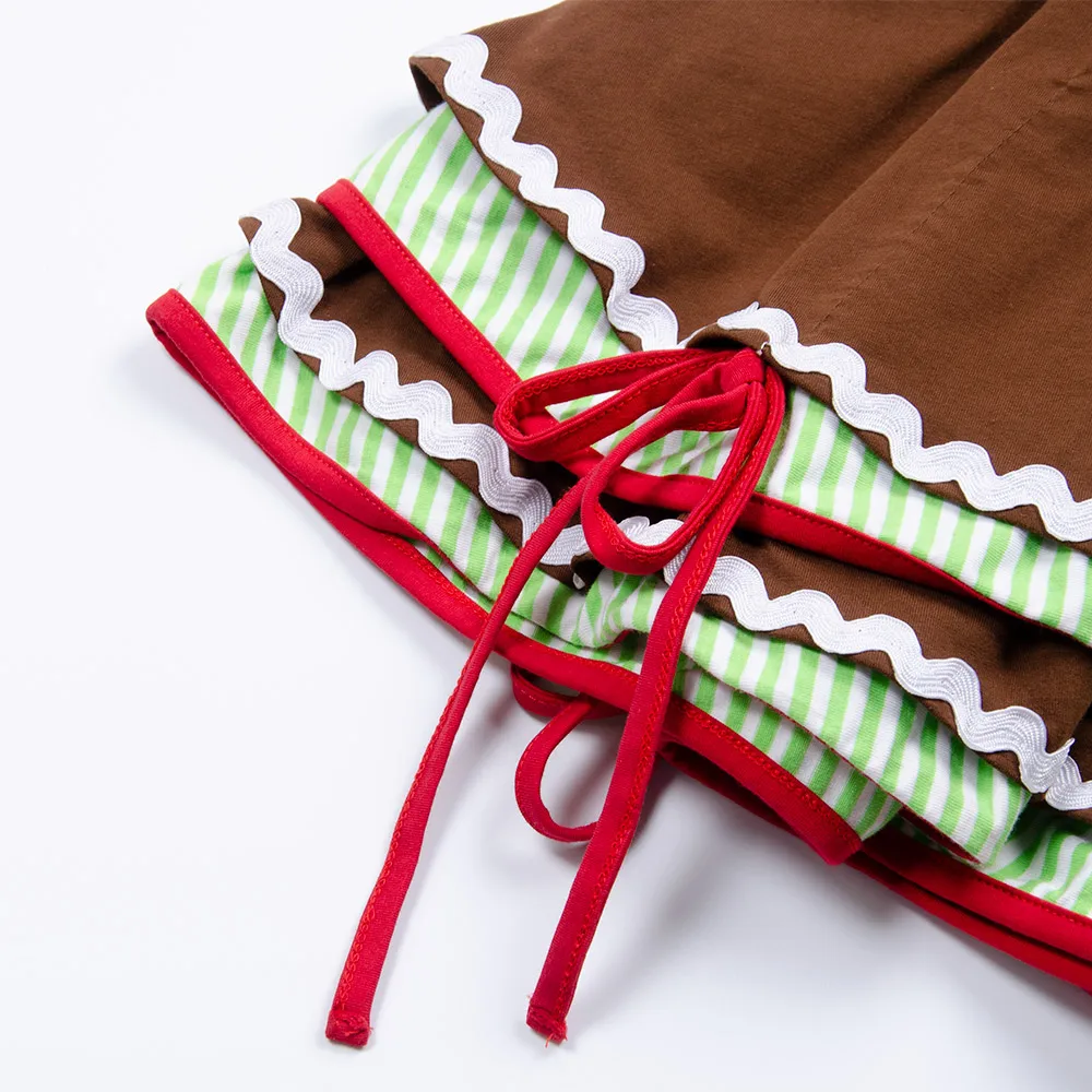 Product Name: Direct Sale Designer Design Baby Girl Christmas Short Sleeve Red Brown Stripe Layers Dress Vestido With Lace