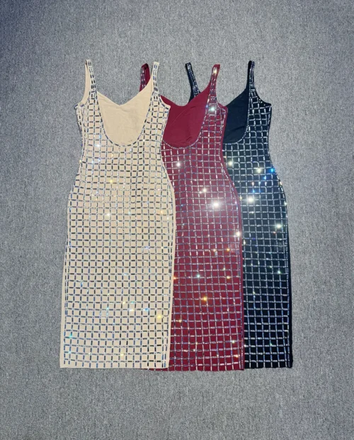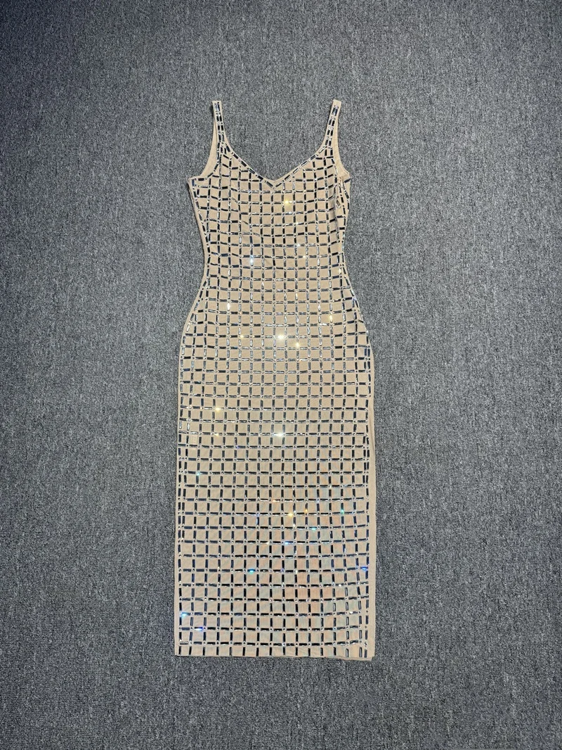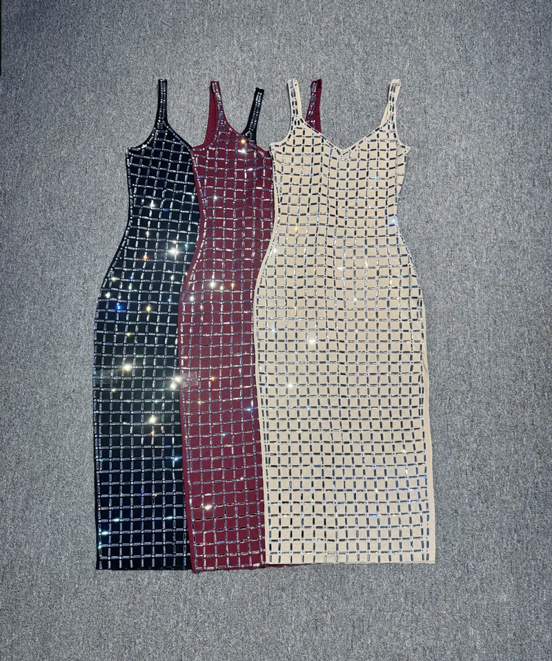 Direct Sales Luxury Banquet Birthday Gown Diamond Sparkling Backless Slit Casual Dress for Sexy Natural Washable Plain Dyed