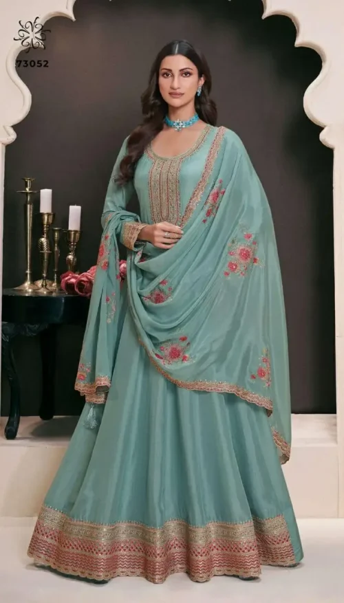 Diwali Festive Anarkali Fancy Suit Set Western Embroidery Work Suit with Multi Thread Sequence Embroidery and Moti Work