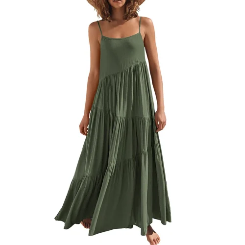 Dresses Women Casual Loose Sleeveless Sundress Spaghetti Strap Flowy Boho Linen Beach Vacation Maxi Long Dress