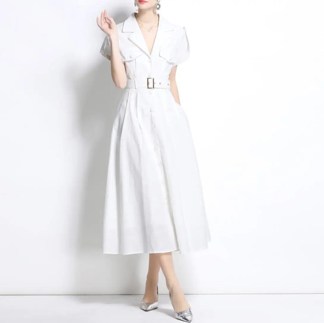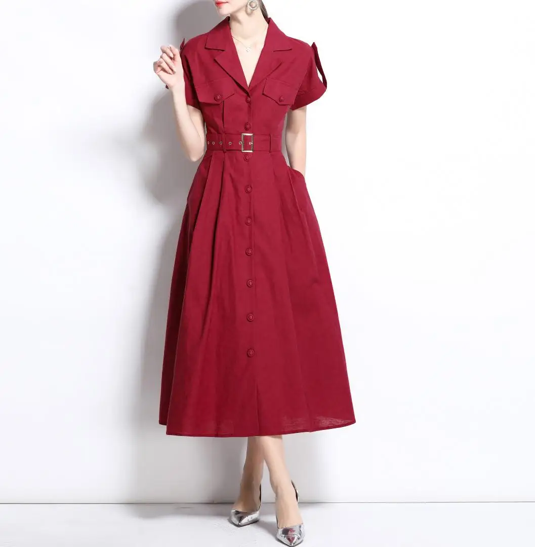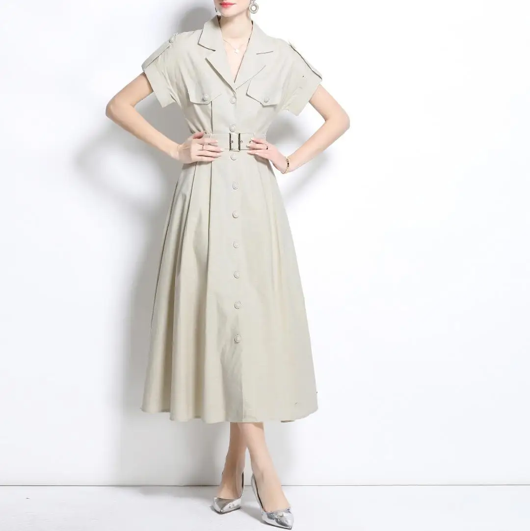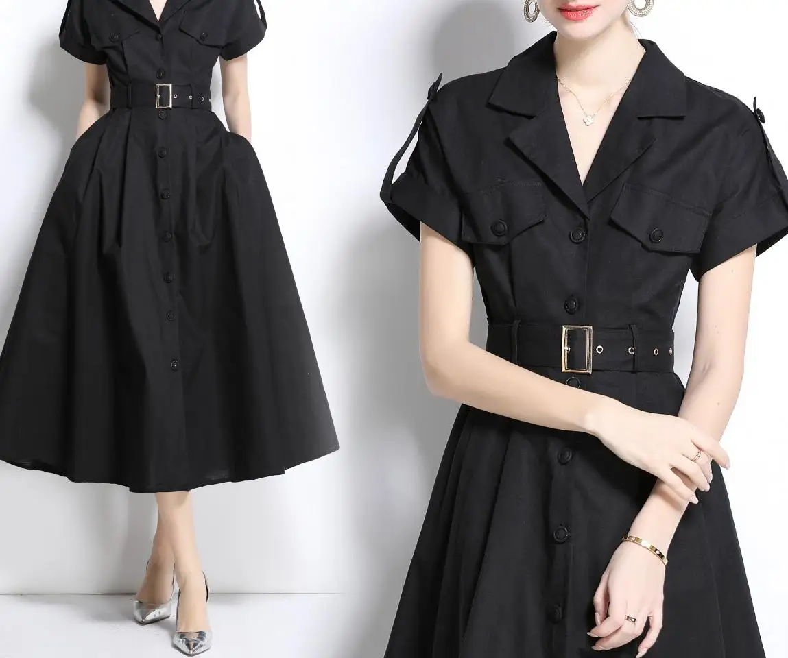 Product Name: Droma in Stock 2025 New Design Vintage Short Sleeve Ladies Fashionable Slim Casual Dresses Women Clothing Black Shirt Dress