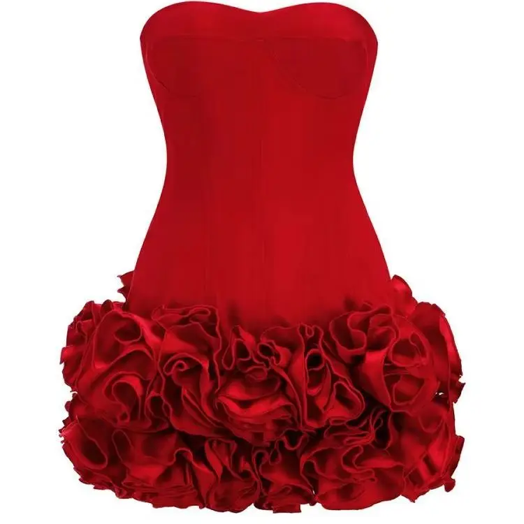 Dropshiping 2025 Summer off Shoulder Design 3D Florals Rose Fashion Dress Mini Women Red Casual Dress Label Dress