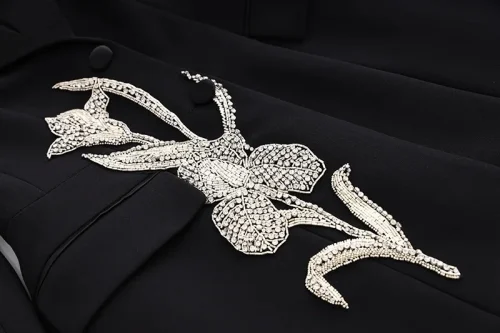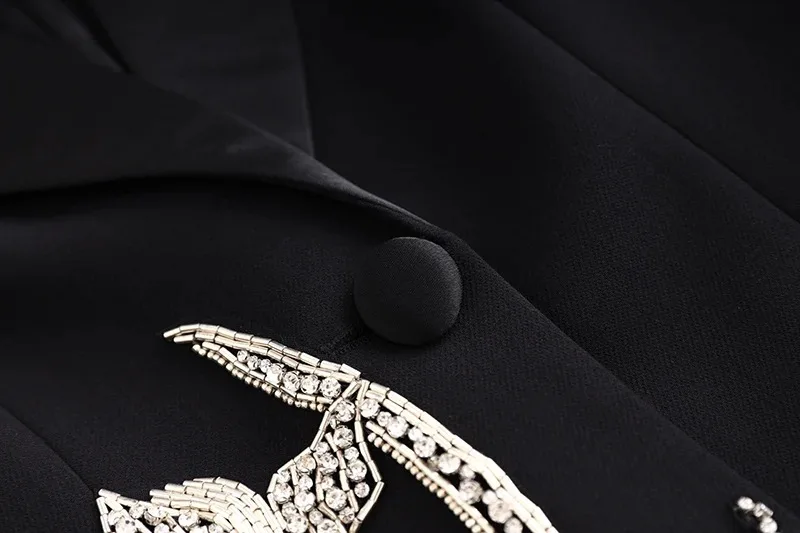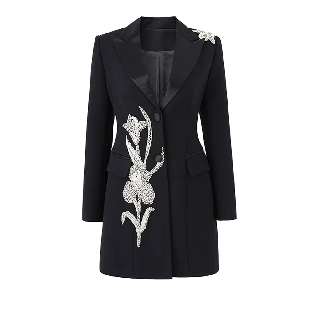 Dropshipping High Quality Fashion Bling Bling Flower Crystal Nail Beading Slim Fit blazer Suit Dress for Women