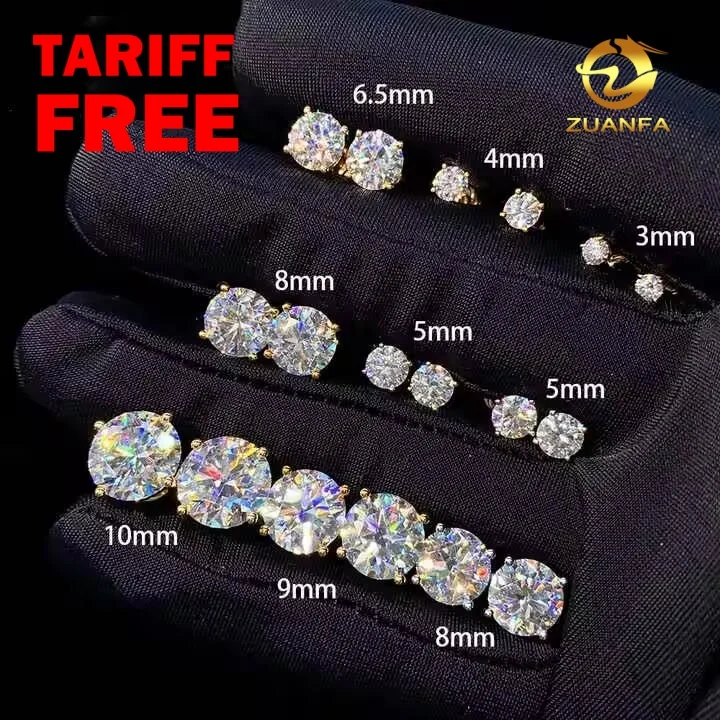 Product Name: DVVS Moissanite Earrings Screw Back Round Cut 4 Prong Stud Earrings 925 Silver Hip Hop Earring for Men and Women