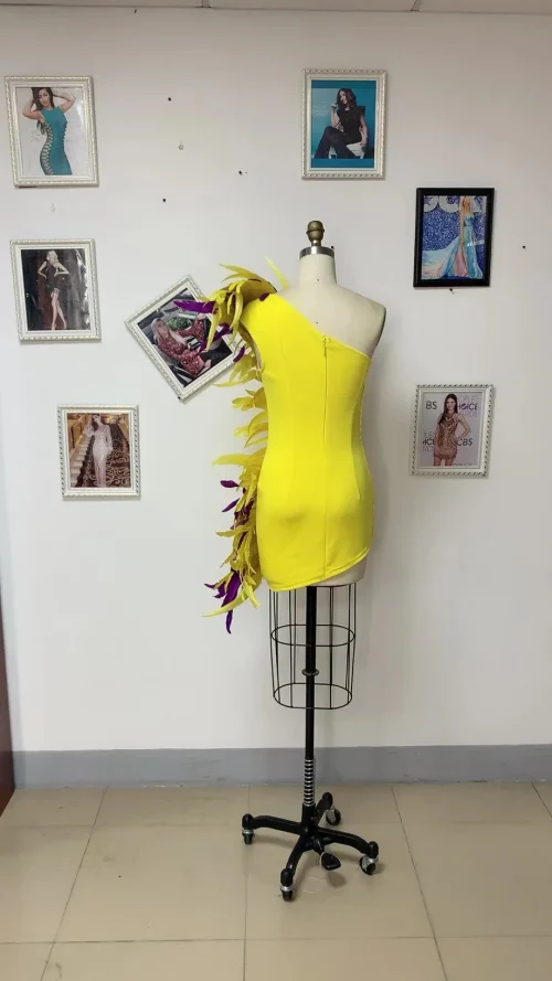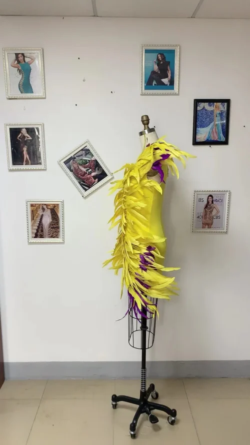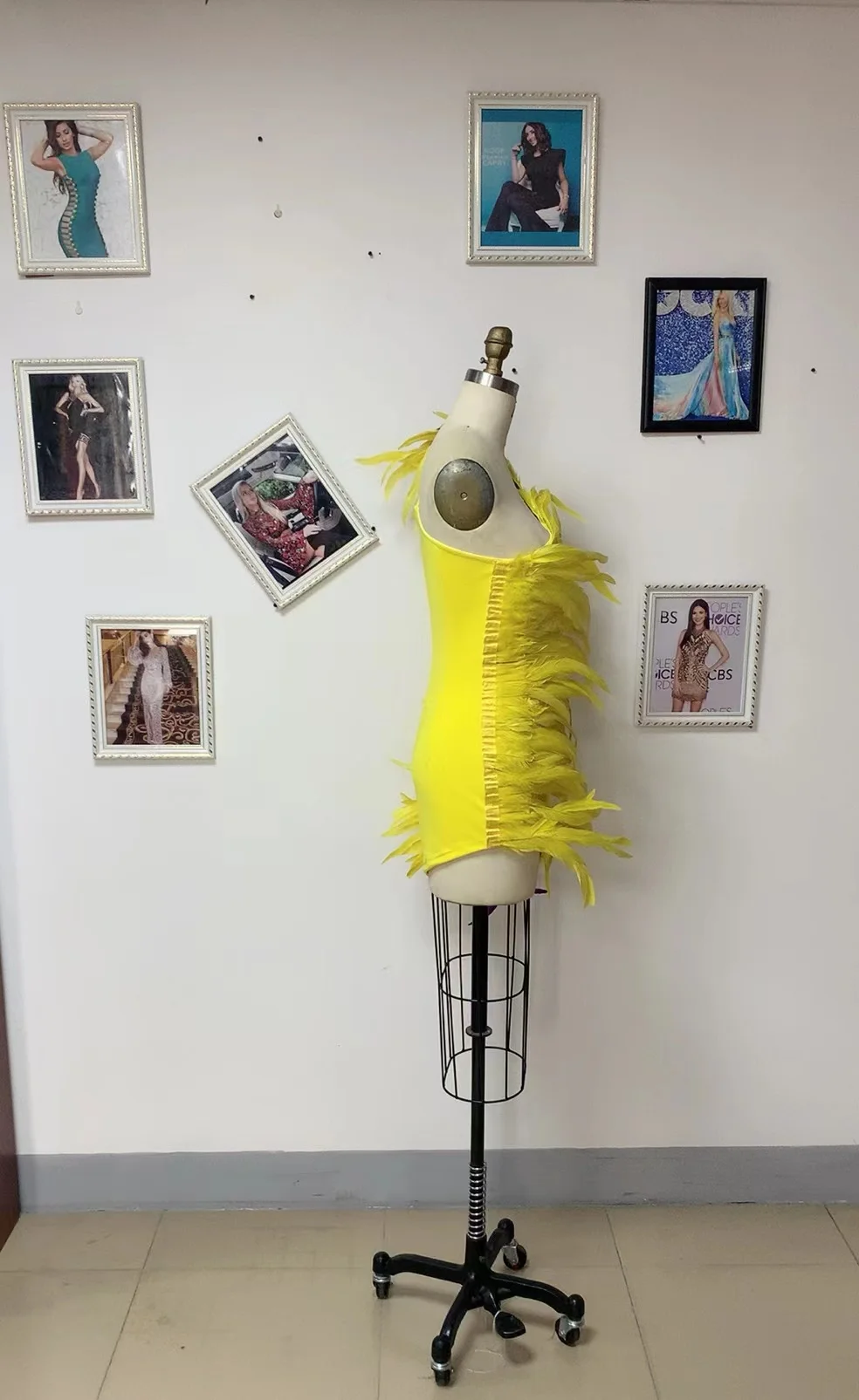 ED2168 Sexy Evening Dress Stage & Dance Wear Yellow Real Feather Women Clothing Prom Dresses With Feathers