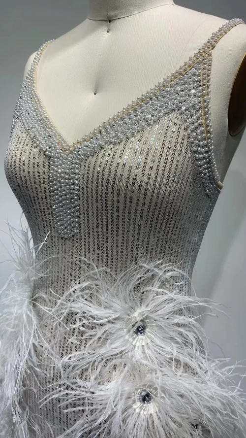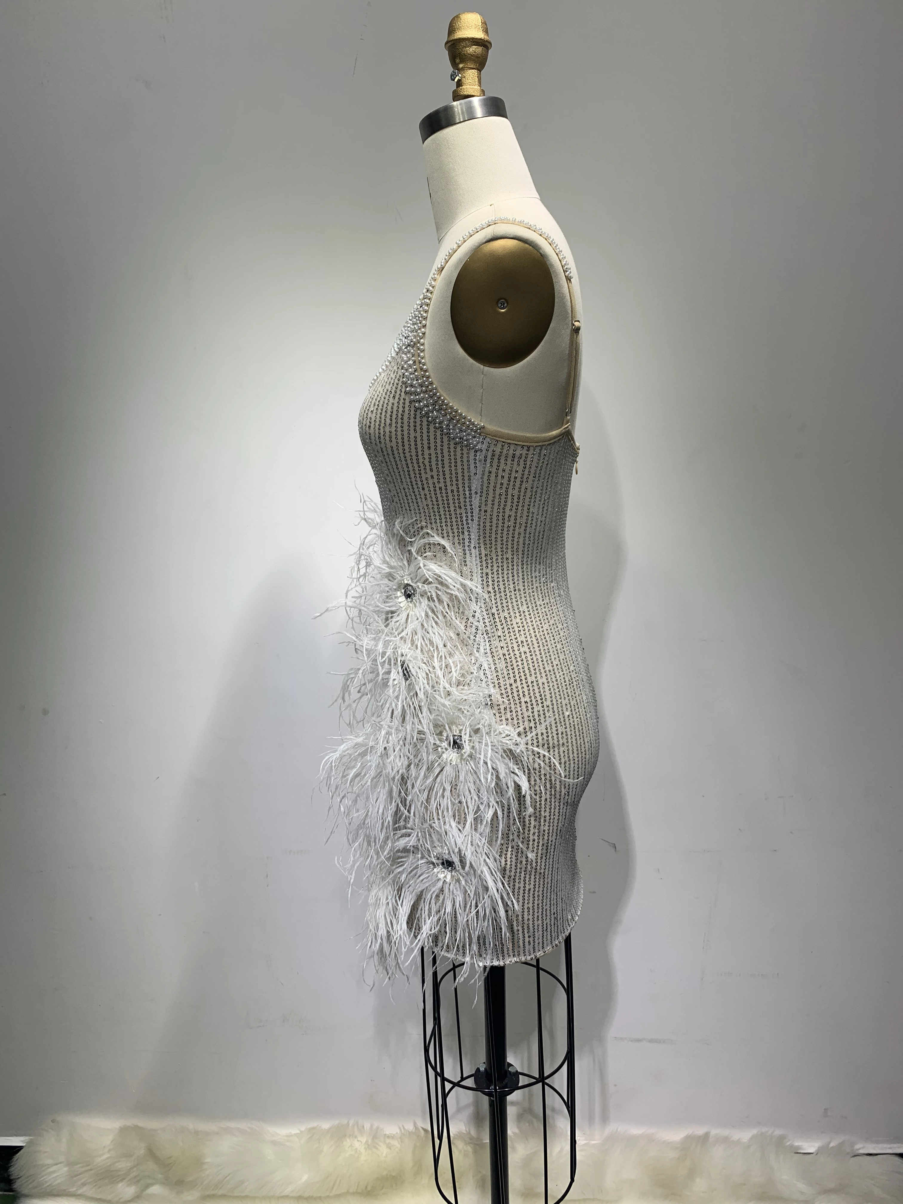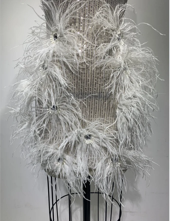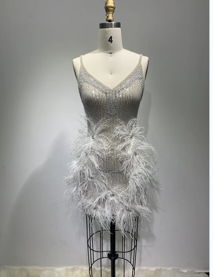 Product Name: ED2245 Women Summer Clothing Sexy Dresses Women Night Low Short Dress for Woman Shiny Handmade Crystal Feather Dresses