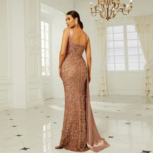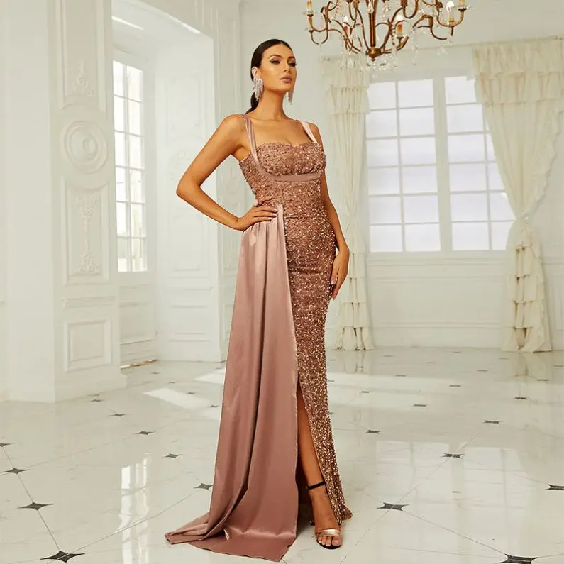 EL1514 Sequin Side Split Evening Dresses Women Patchwork Sleeveless Sexy Party Dress High Waist Backless Zip Elegant Long Dress