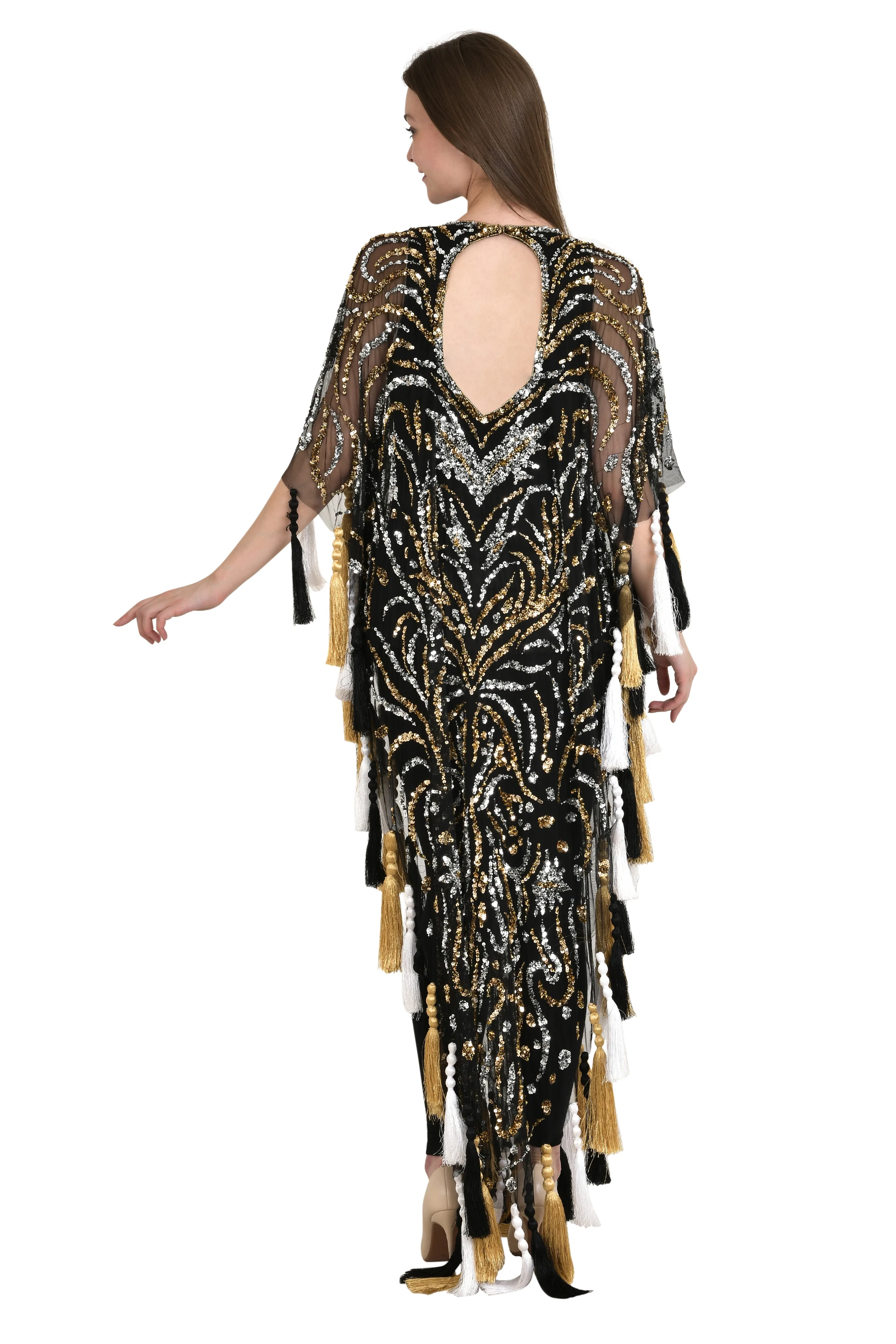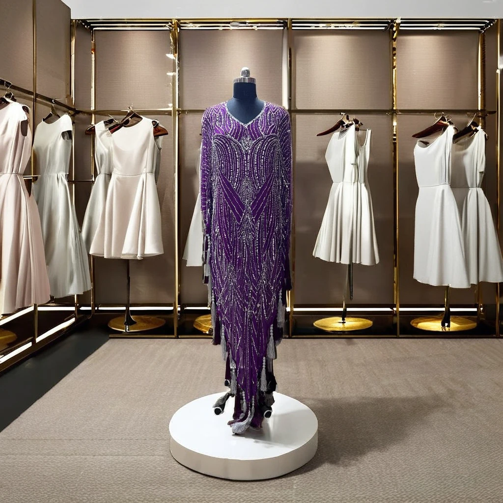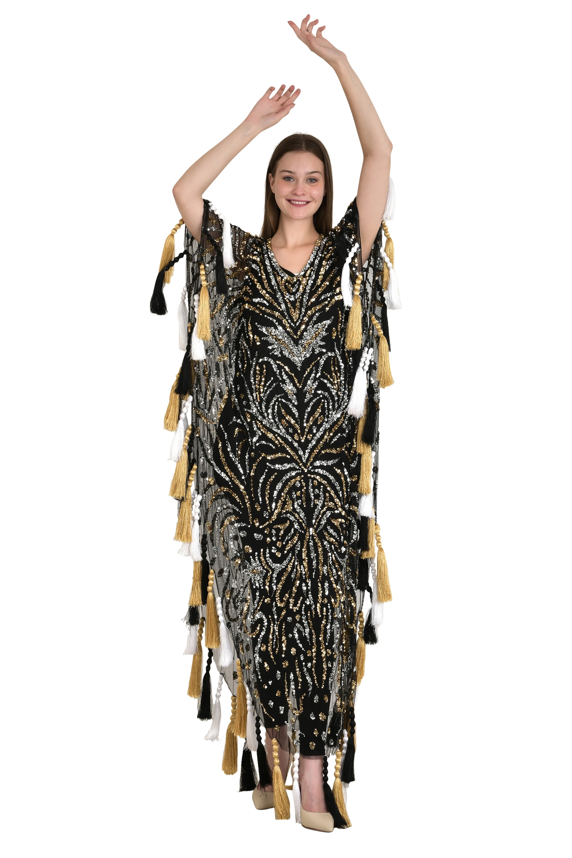Ele V-Ne Midi Dress With Heavy Embroidery Work for Women Conference Party Club Wear Honeymoon Casual Sweet Style for Dinner