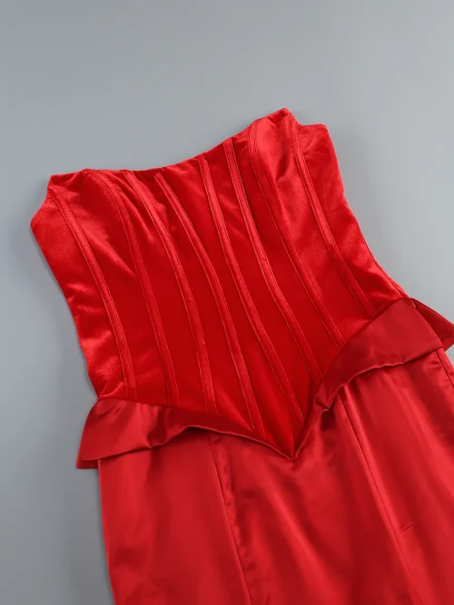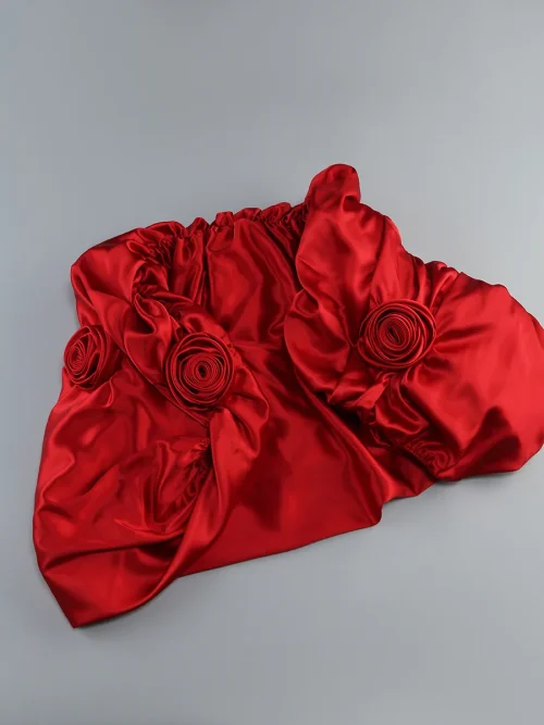 Product Name: Elegance Red Mermaid Evening Dresses with Rose Flowers Strapless Long Ruffled Floral Formal Dress with Shawl and Prom Gown Cape