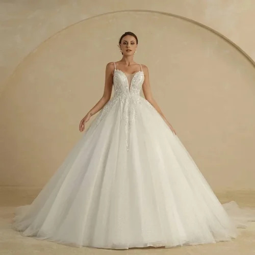 Product Name: Elegant and Delicate Camisole Deep V-neck Lace Sequin Embroidery Wedding Dress Sparkle Dress Dress