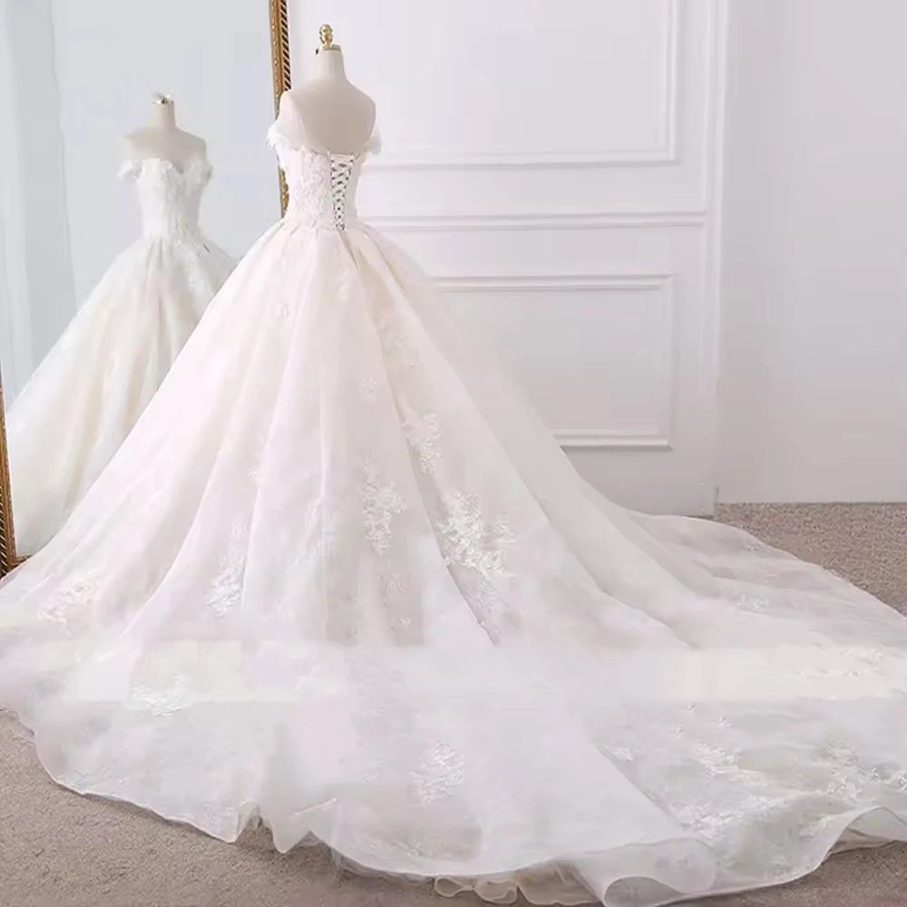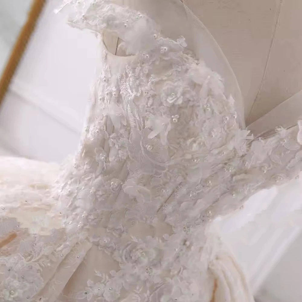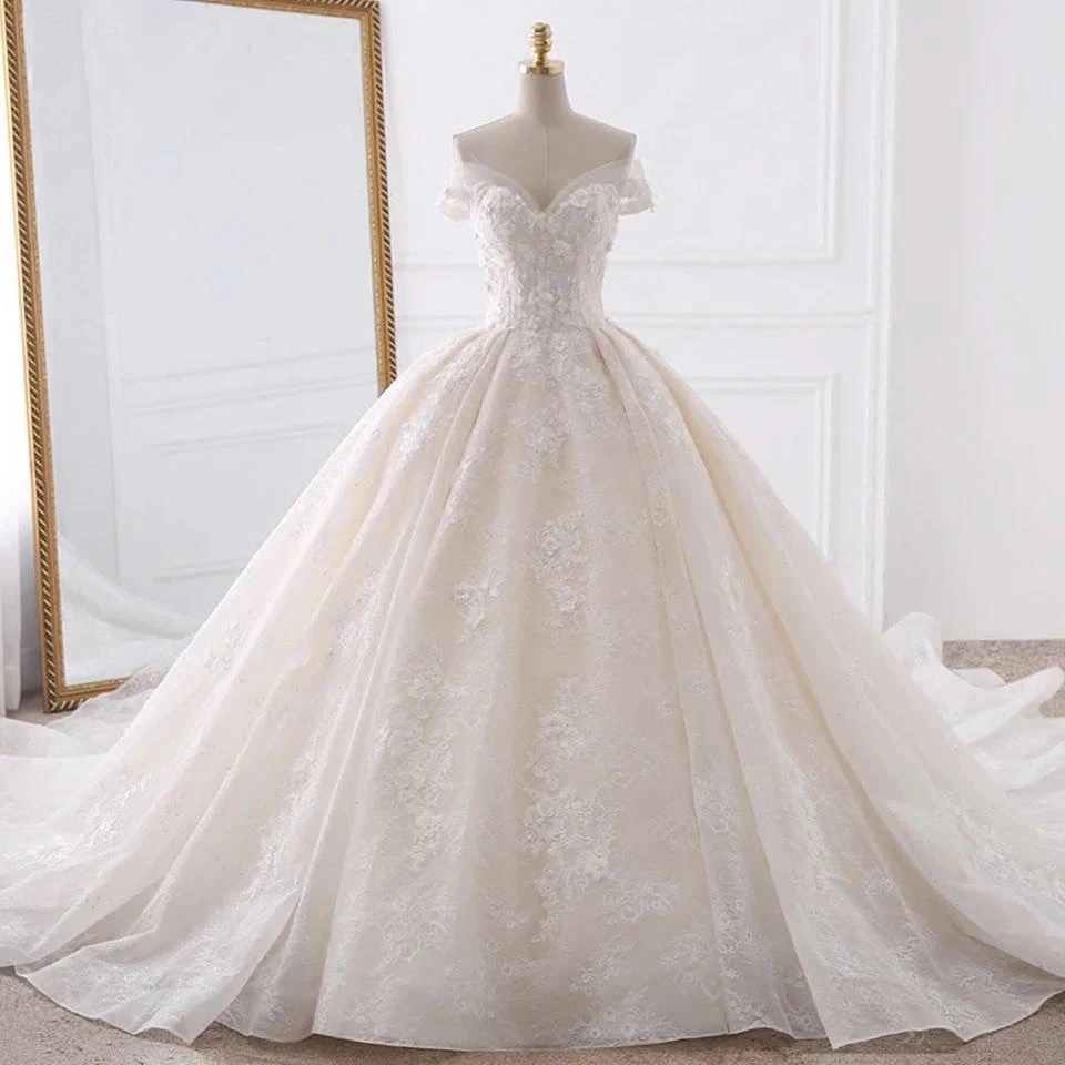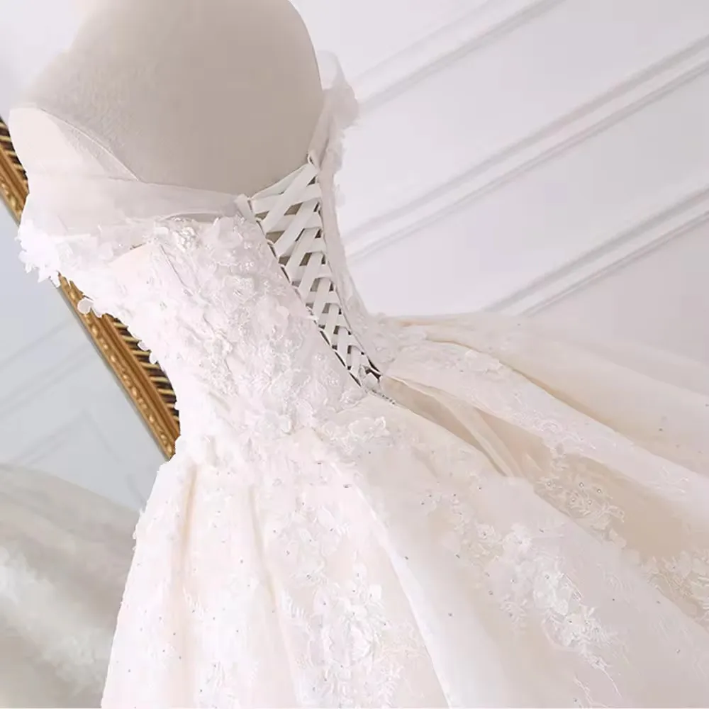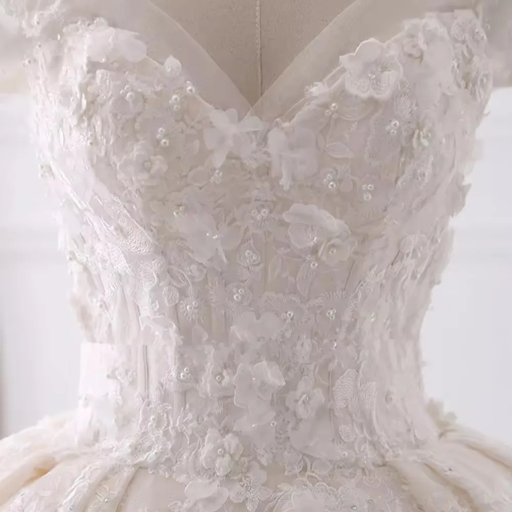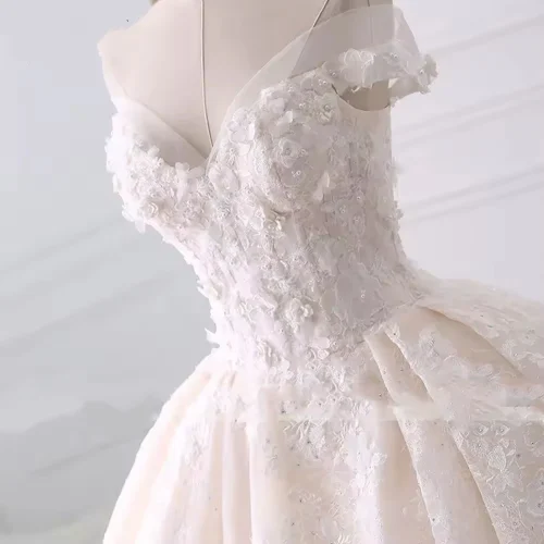 Product Name: Elegant and Delicate Off-the-shoulder Large V-neck Lace Embroidered Beaded Wedding Dress