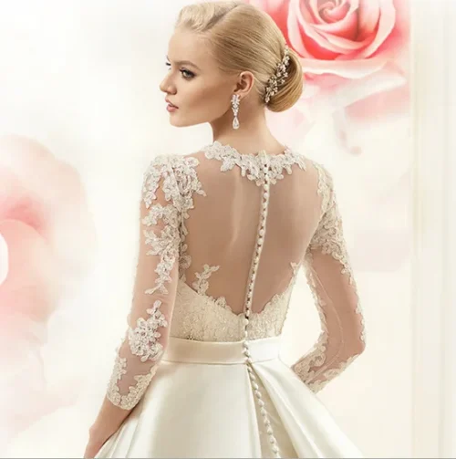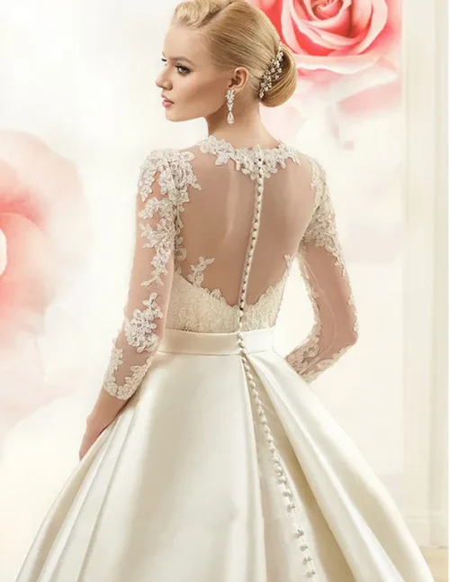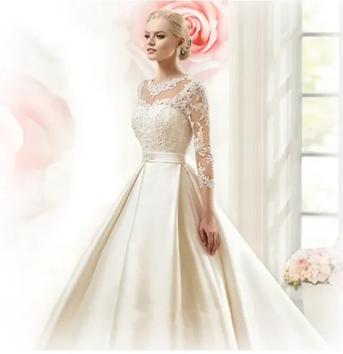 Elegant Casual Dresses Stain Princesses Bridal Gowns Dress Champagne Satin Lace Appliques Beaded Belt Wedding Dresses