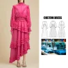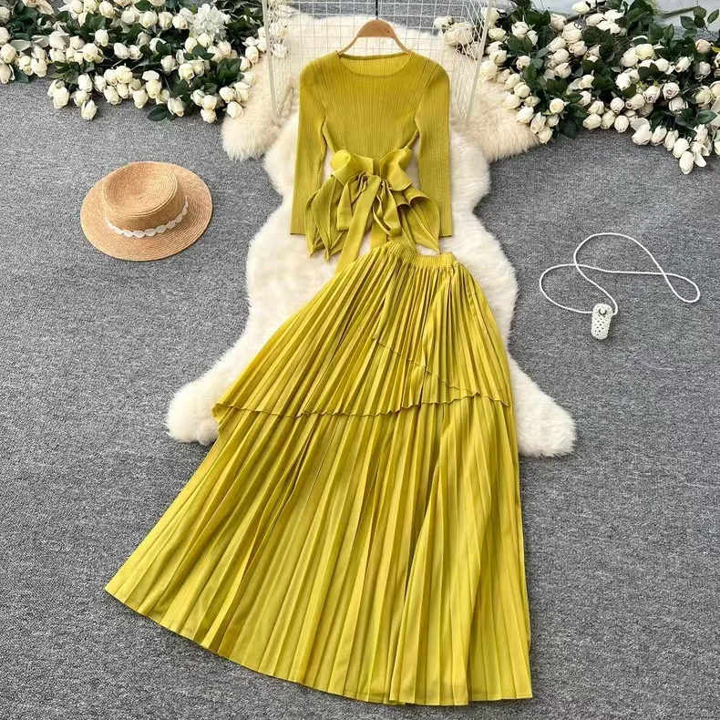 Elegant Casual Women Dress 2025 Luxury 2 PCS Pleated Top and Skirt Sets Asymmetrical Hem Maxi Dresses Long Sleeve for Ladies