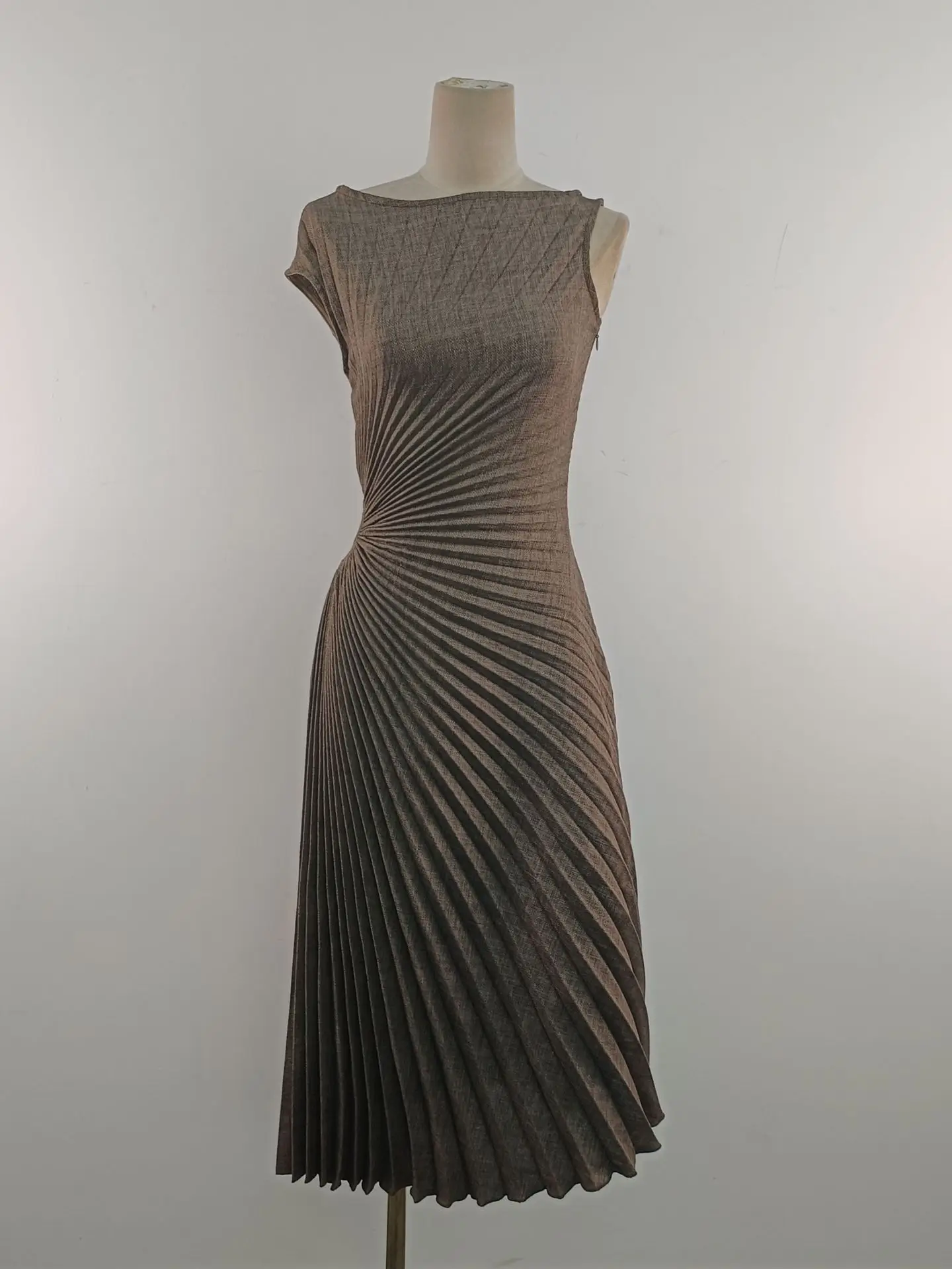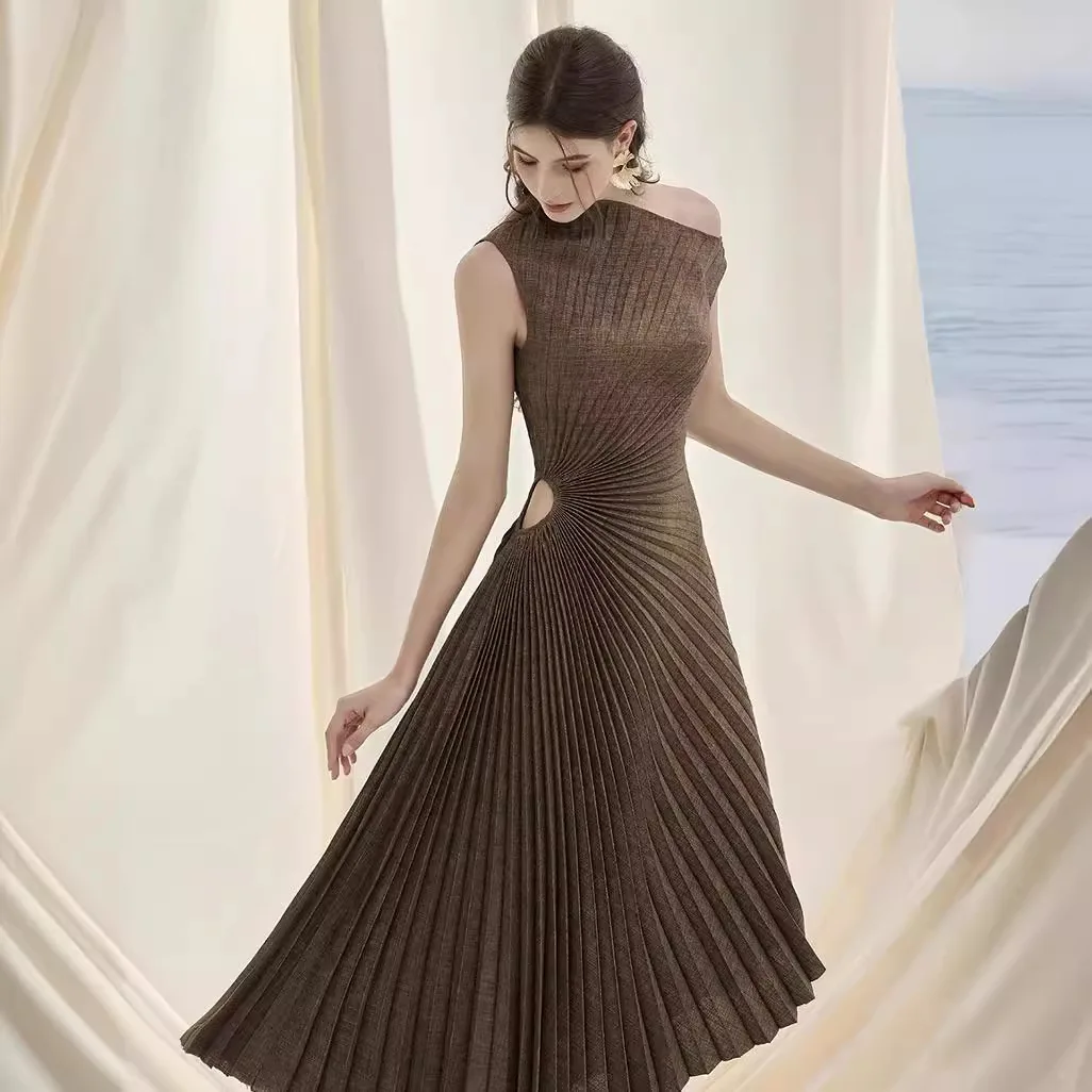 Product Name: Elegant Design Niche Cut Pleated One-Shoulder Dress Long Skirt Waistline Front Digital Washable for Summer Season-Model 30225