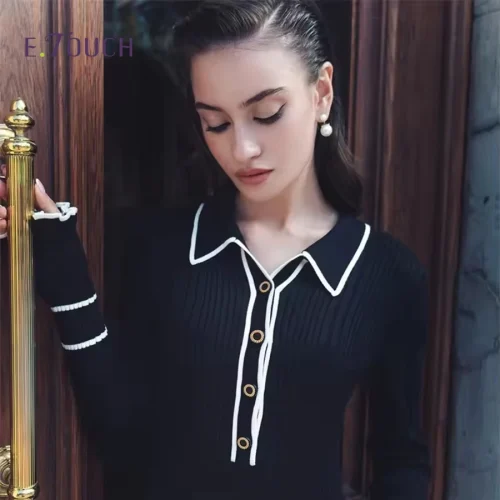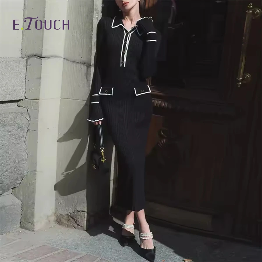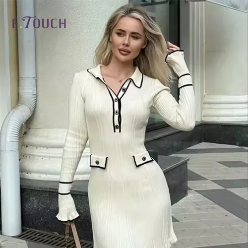 Product Name: Elegant Knitted Dress with Turn-down Collar, Women’s Long Sweater Dress for Casual or Formal Occasions