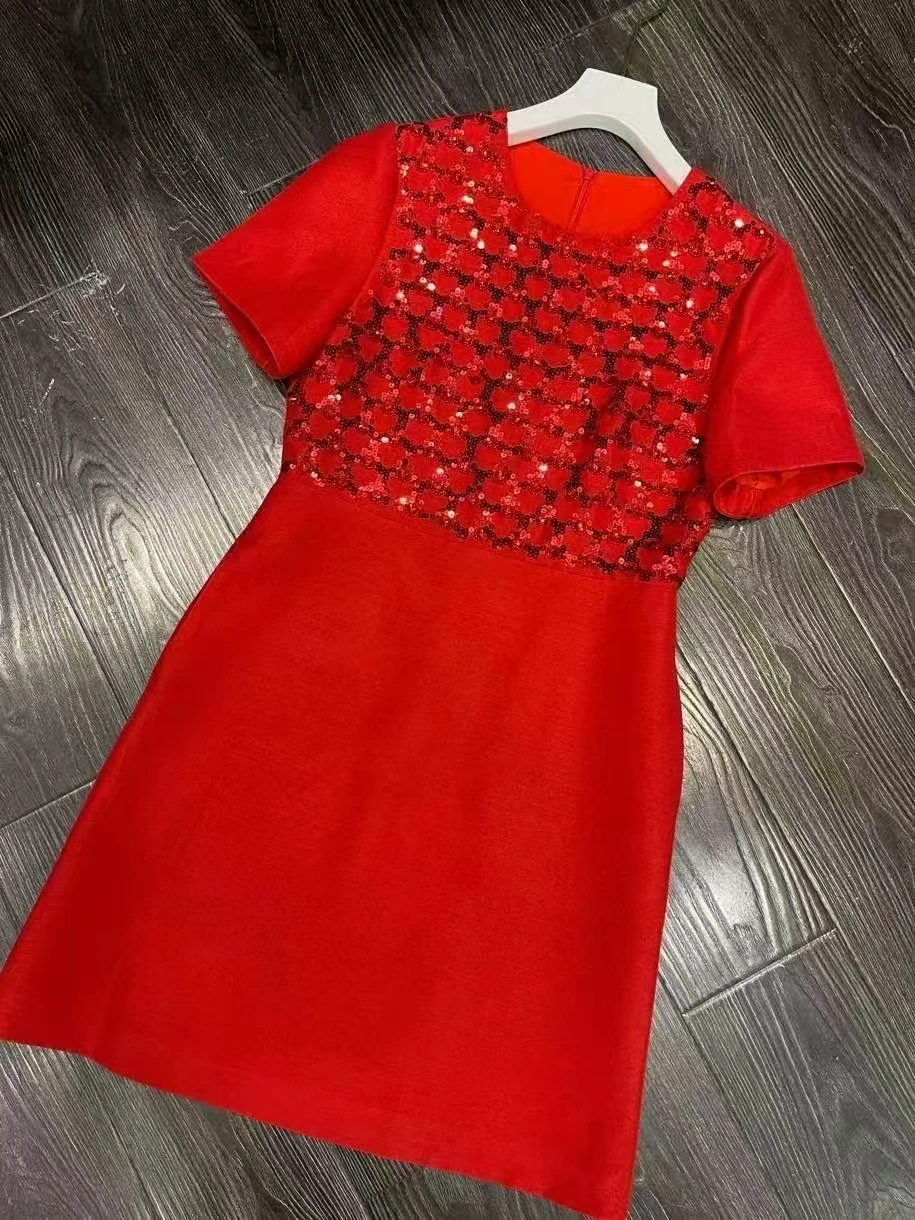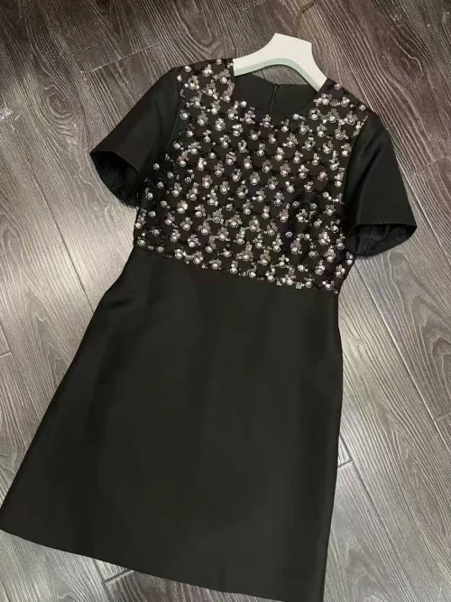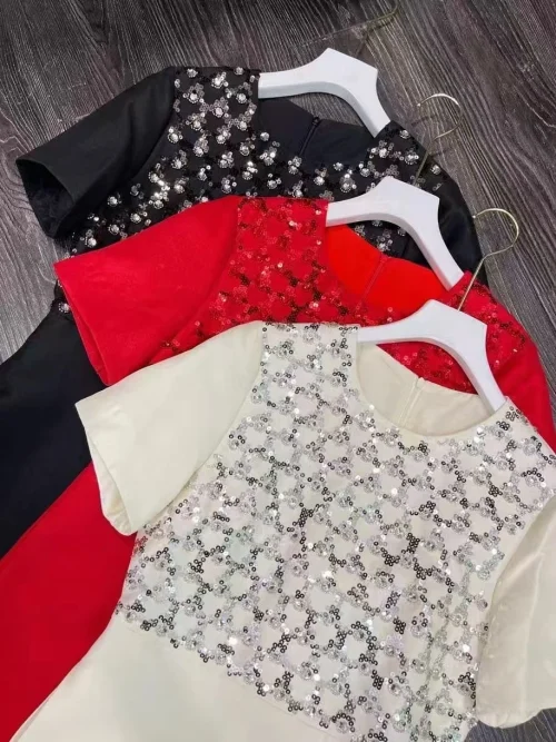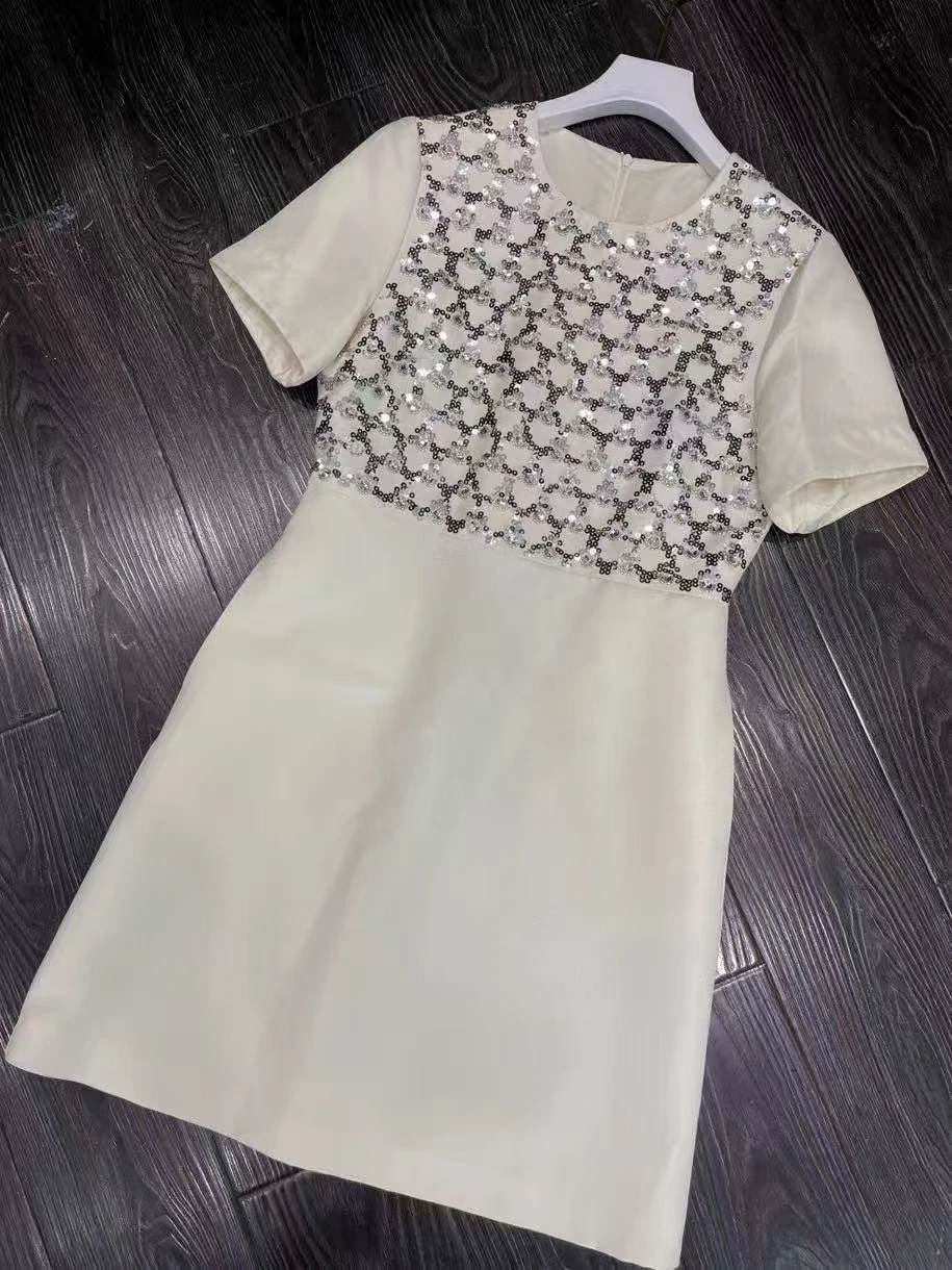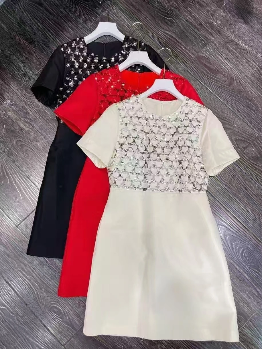 Product Name: Elegant Mini Dress Summer Spring New Fashion Design Women Runway High Quality Embroidery Sequin O-Neck Short Sleeve Office Lady