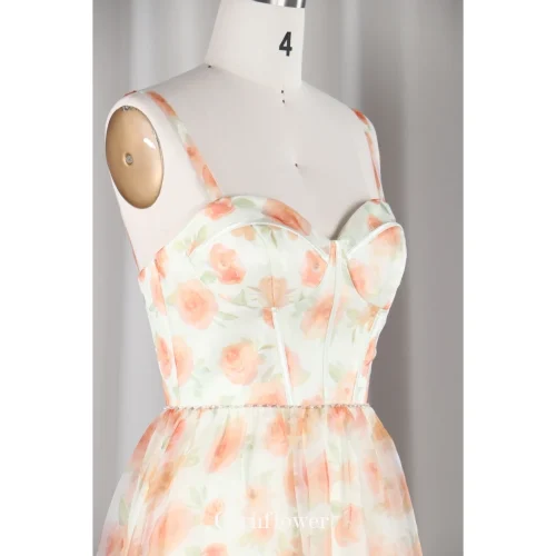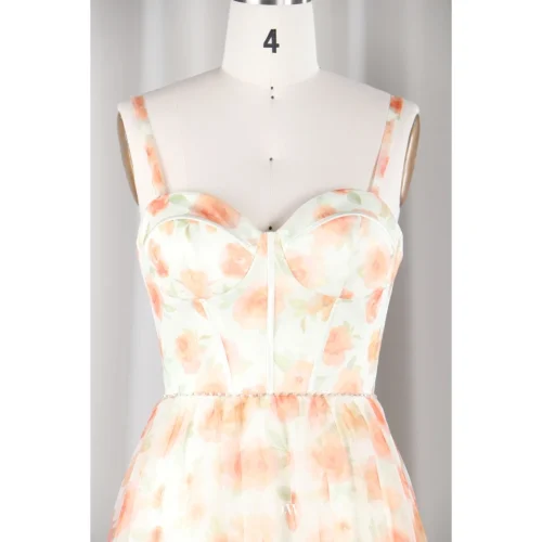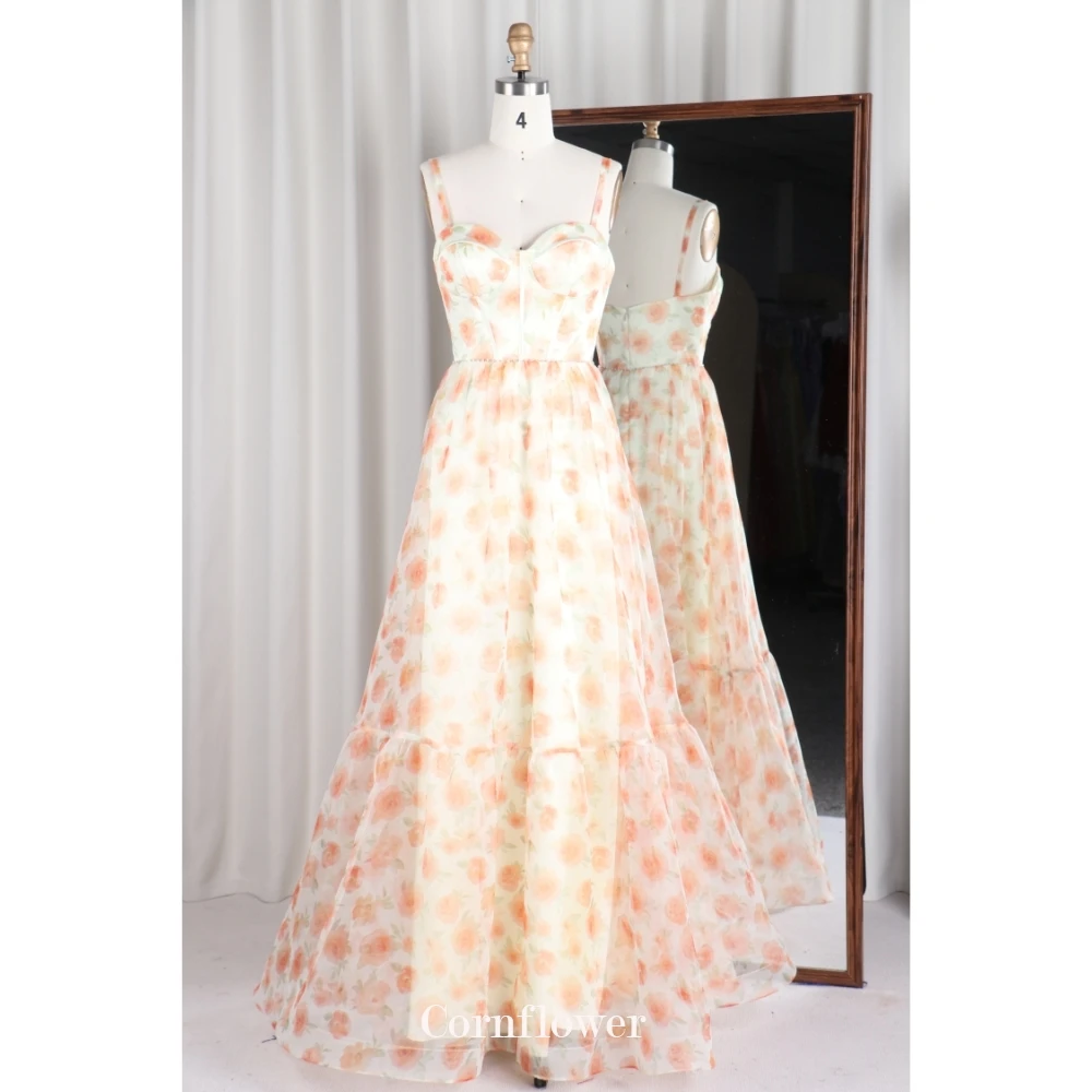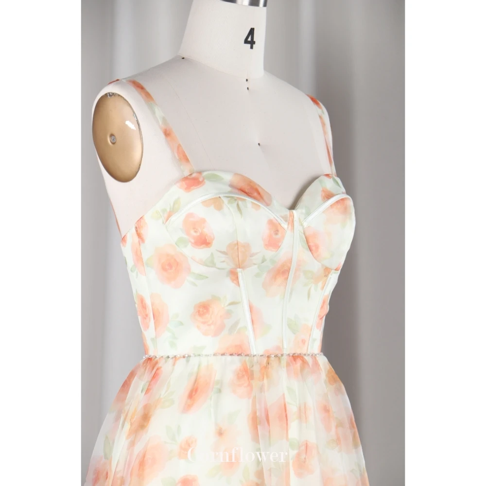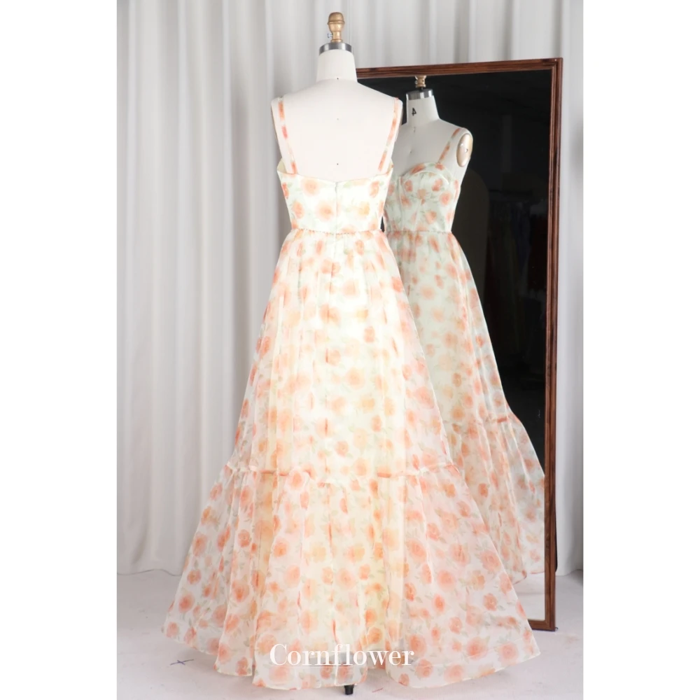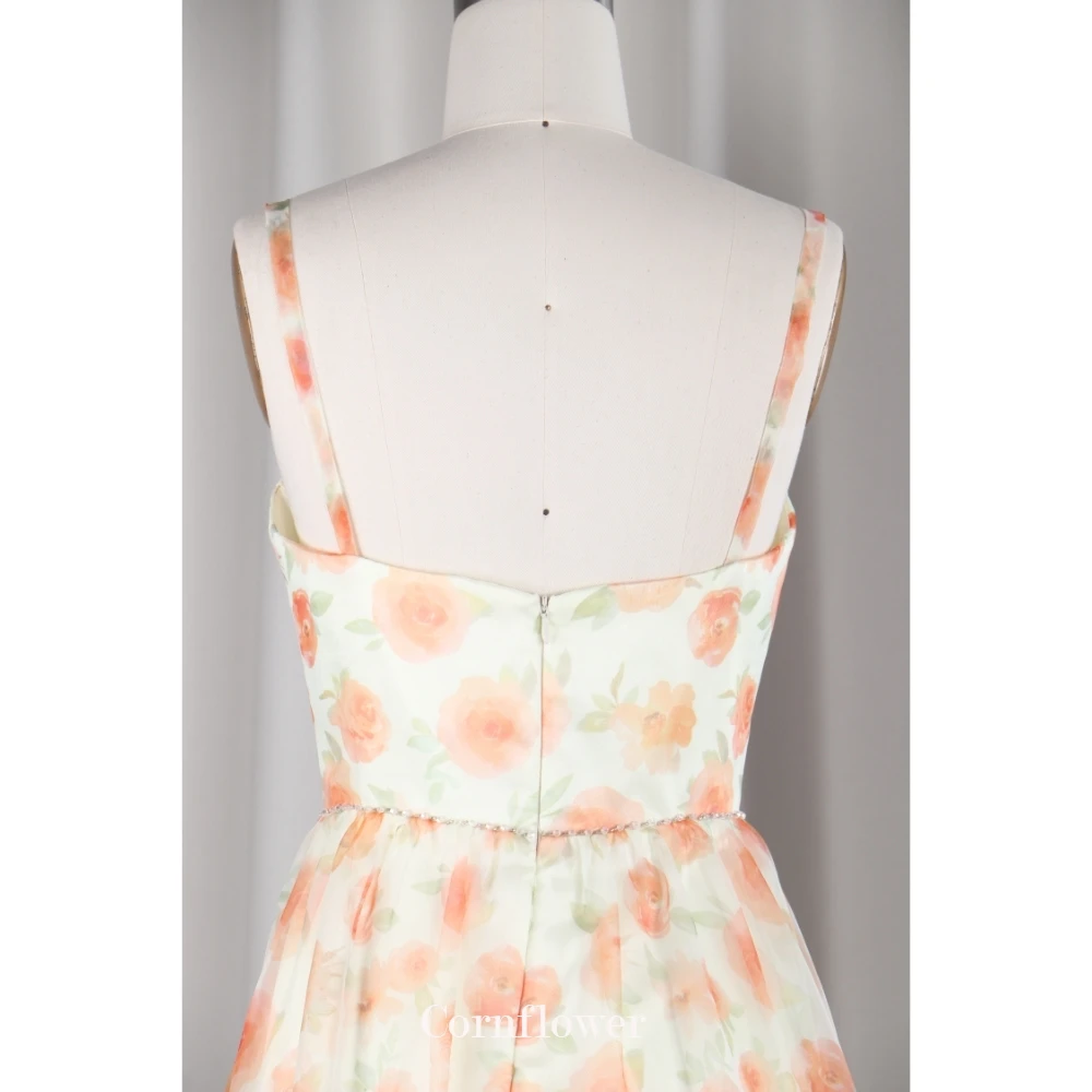 Elegant Puffy Dress Royal Rose Print Corset Fishbone Sweetheart Midi Sundress Floral Satin Beauty Women Clothing