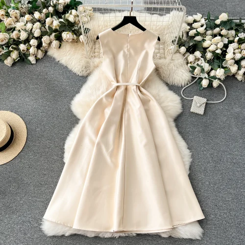 Product Name: Elegant Sun Midi Dress For Women Sleeveless Empire Solid Lace Vestidos
