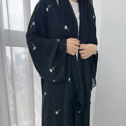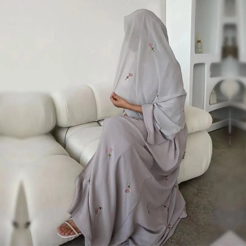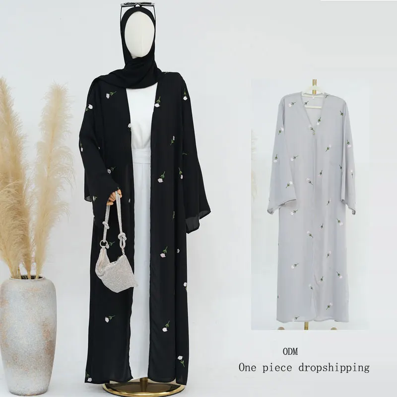 Product Name: Elegant Versatile Open Robe for Women Autumn/Winter New Style Embroidery Viscose Material Popular XXL Muslim Abaya for Weddings
