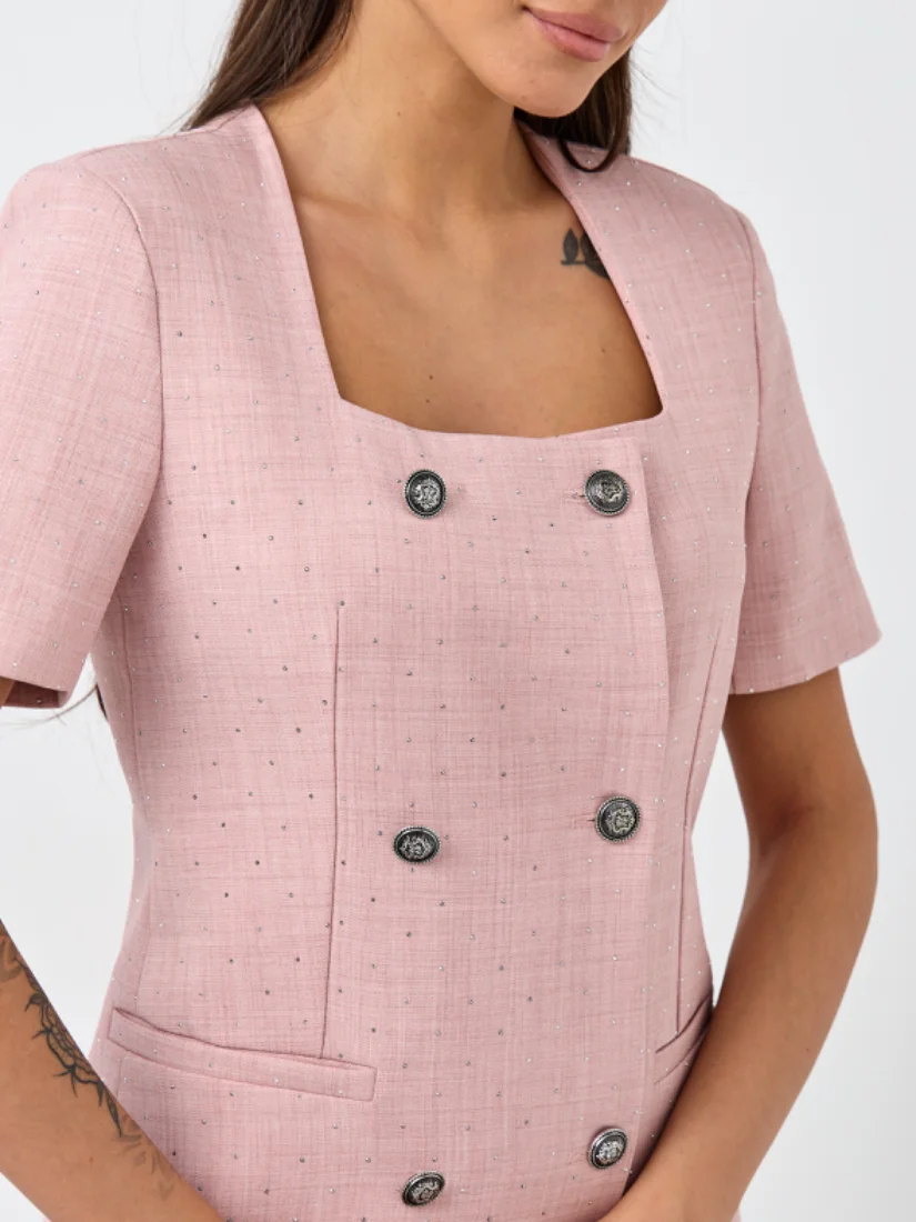 Product Name: Elegant Versatile Square Neck Casual Dress Daily Romantic Short Sleeve Mini Dress Summer Occasions Natural Sustainable Patterns