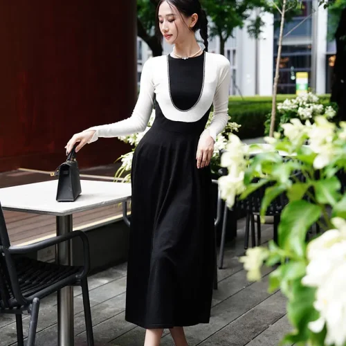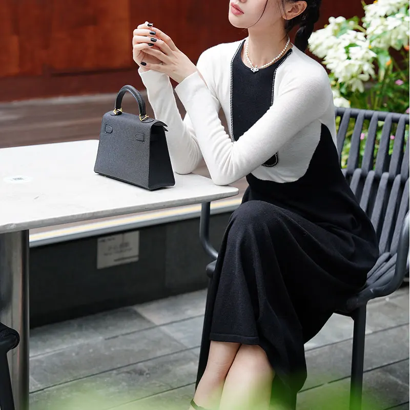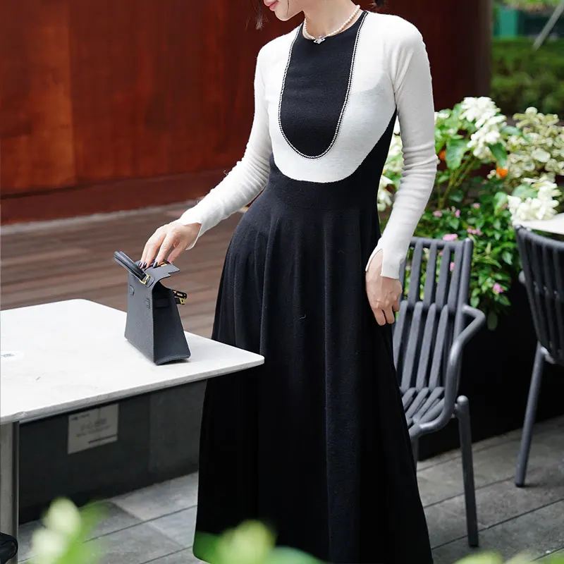 Product Name: Elegant Vintage Dresses for Women Casual Bodycon Style Knitted Weaving Fashion Autumn Maxi Dress