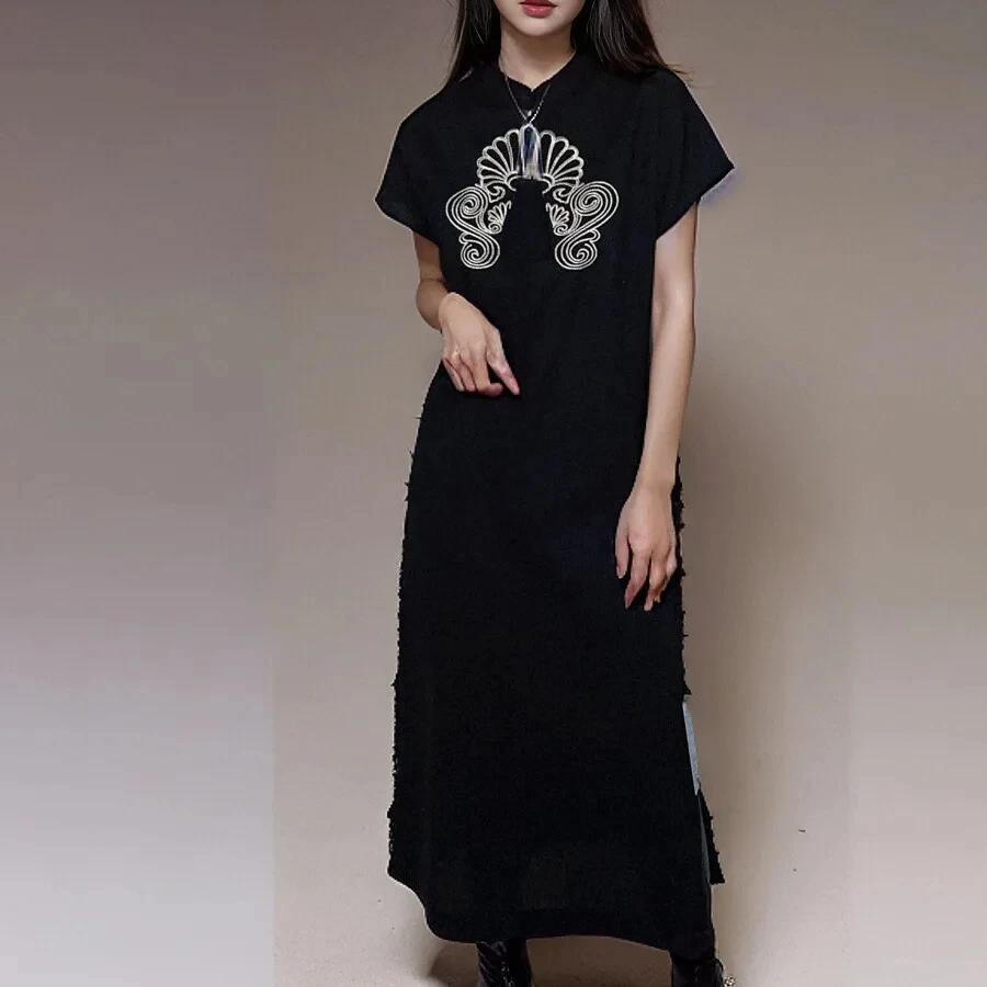 Embroidered Women Clothing Casual Dress Linen Cotton for Ladies STNI1027Y