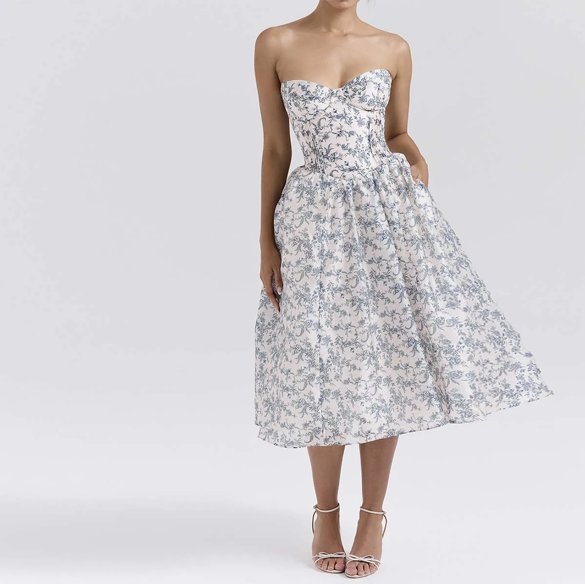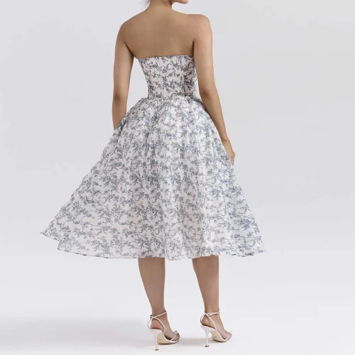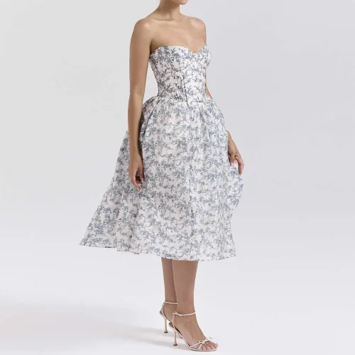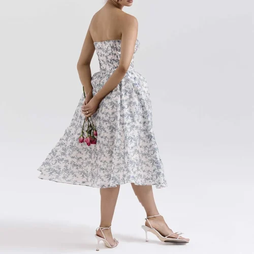 English Porcelain Print Strapless Sundress Elegant and Eyecatching Women Clothing