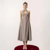 Product Name: Enyami Cozy Holiday Summer Beach Resort New Style Khaki Cotton Linen Strapless Loose Long Dress Women With Pockets best dress