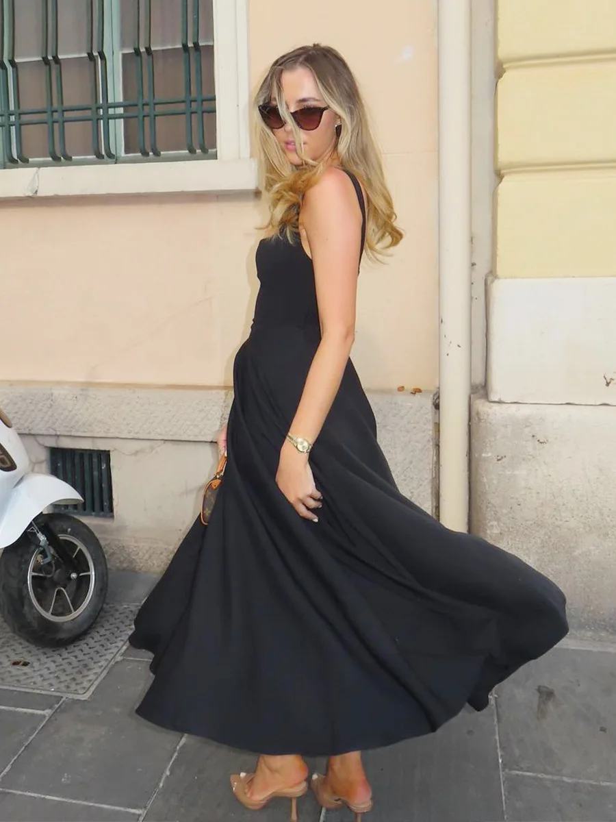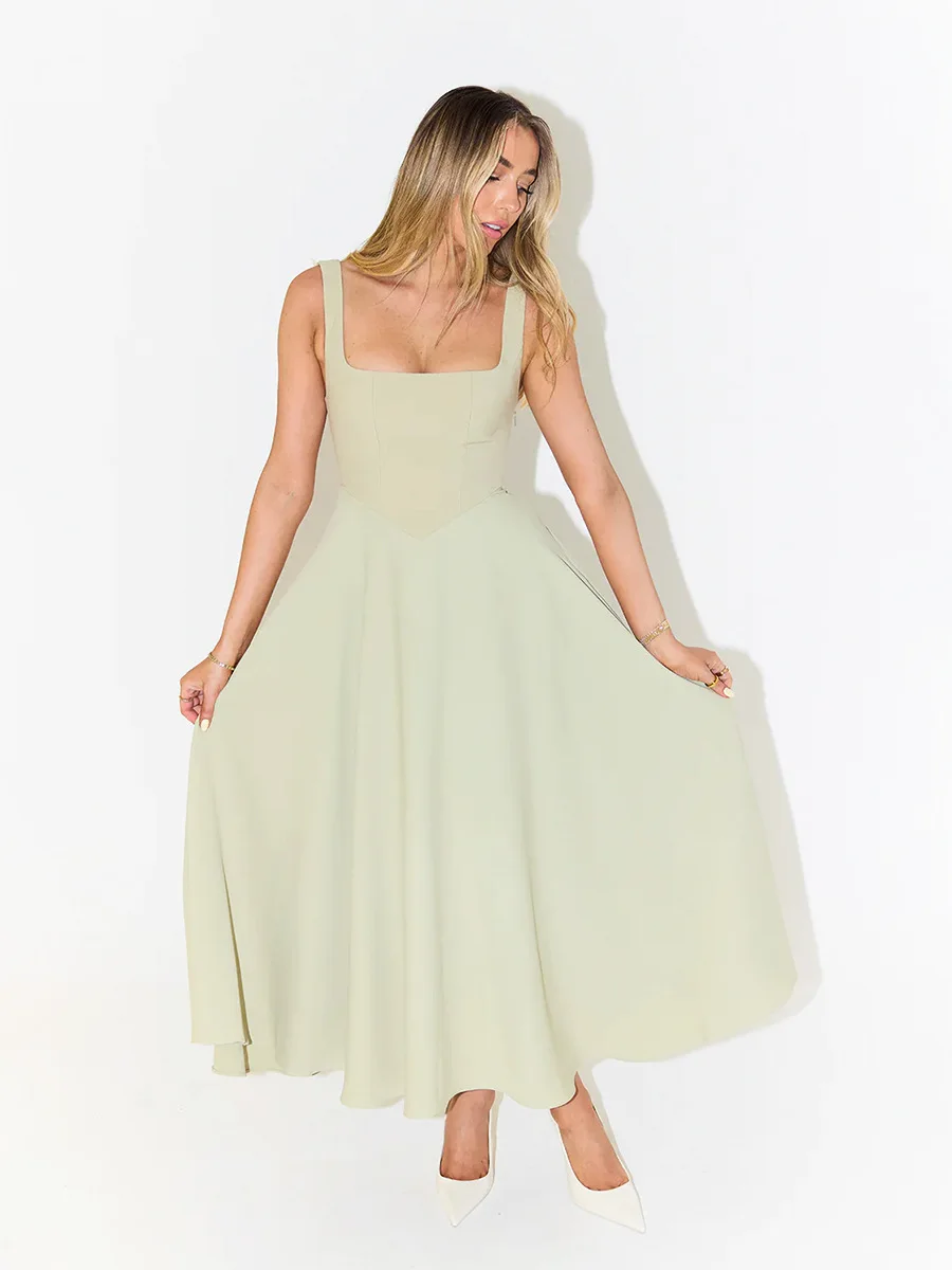 Product Name: Enyami Women’s Square Neck Spaghetti Strap Long Slim Fit Waisted Sundress Casual Sexy Dress Robe French Style White Dress