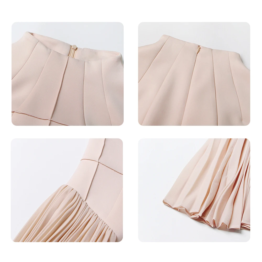 Product Name: European American Casual Summer Dress Simple Niche Design Stand-Up Collar Waist Pleated Sleeveless Maxi Length Dress