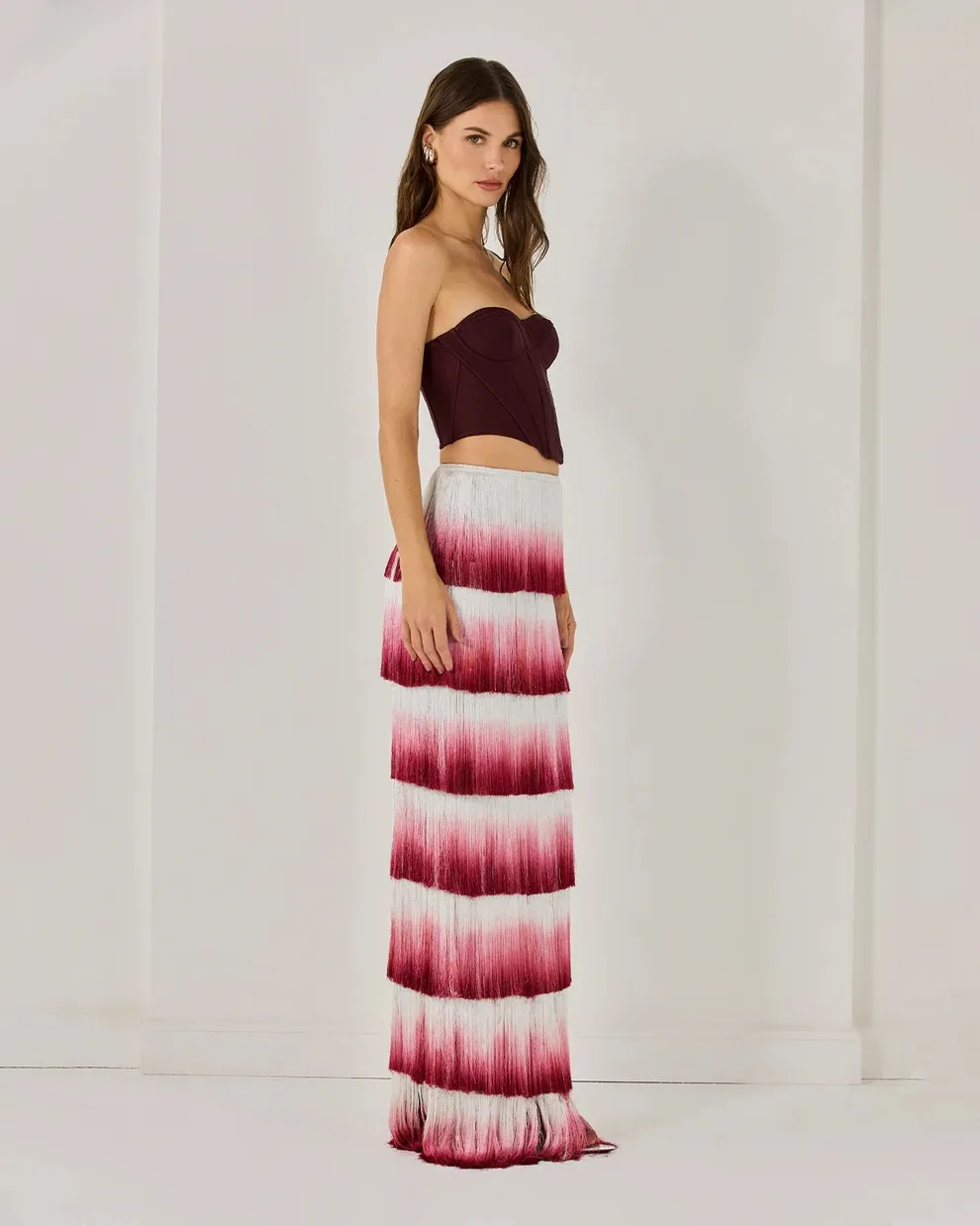 Product Name: European American Style Striped Strapless Shoulder Long Sleeved Dress Casual Midi Length Feathers Decoration Size XL for Summer