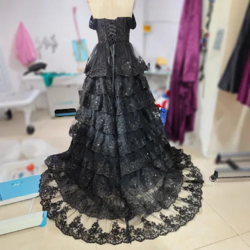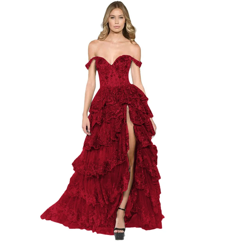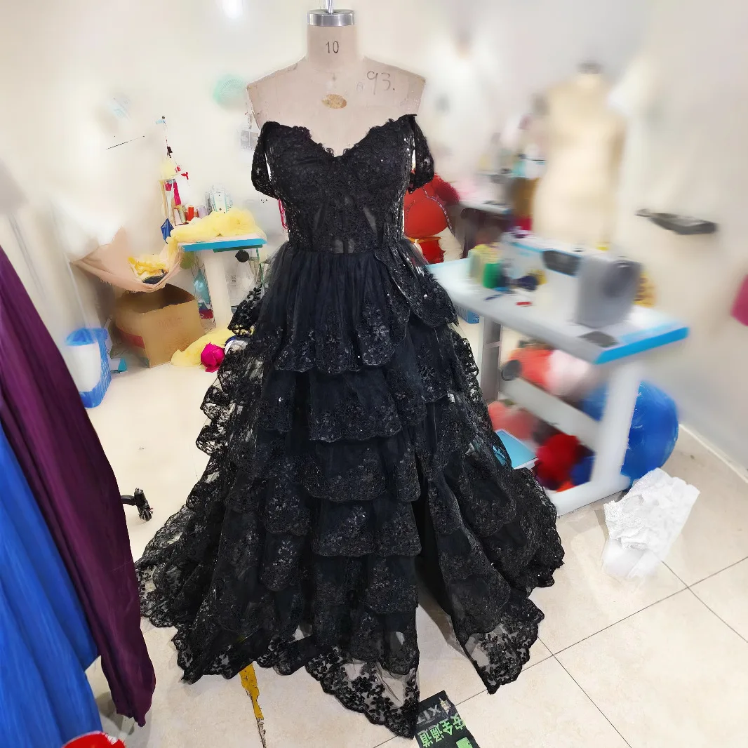 Product Name: European and American retro floor-length A-line evening dress, black one-shoulder, slimming and elegant long dress.