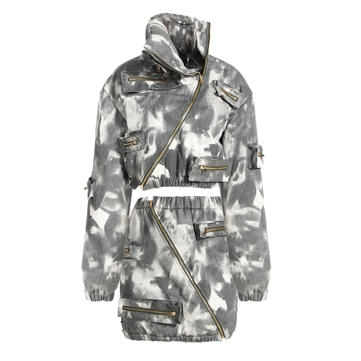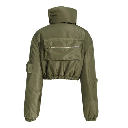 Fall Winter Sexy Casual Zipper 2 Piece Short Crop Cardigan Puffer Coat Jacket With Mini Cargo Skirts Sets Women 2 Piece Outfits