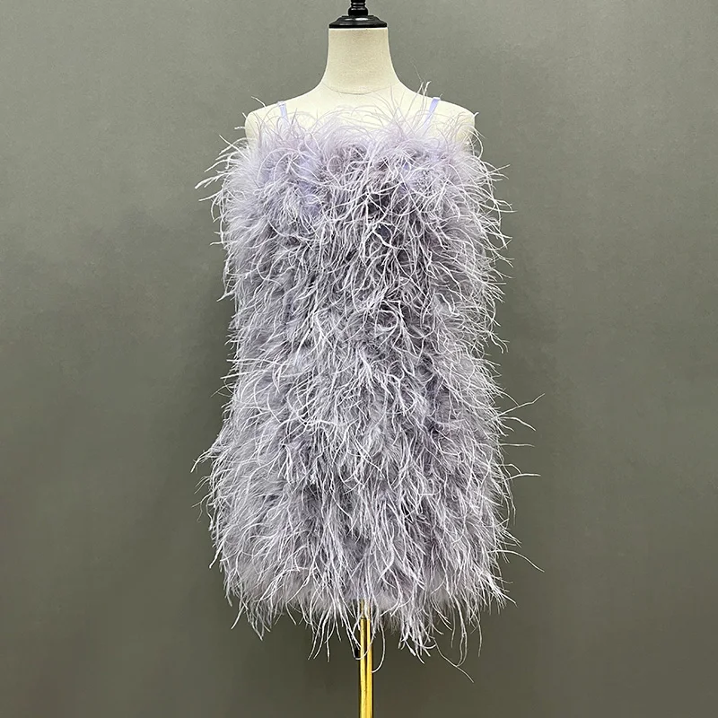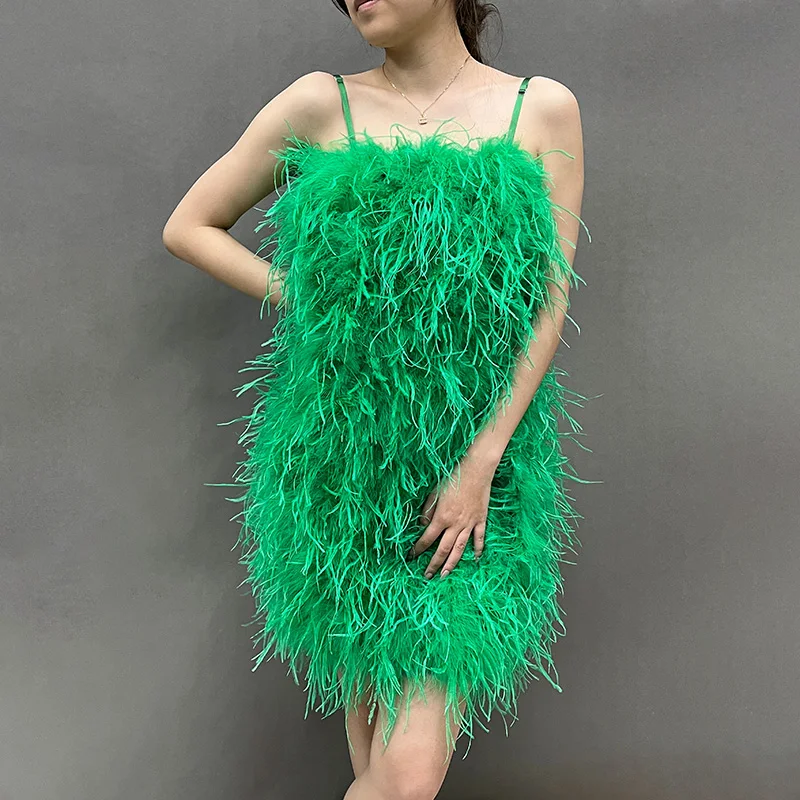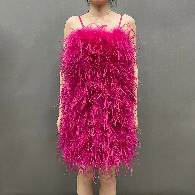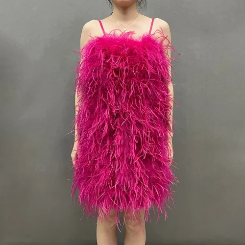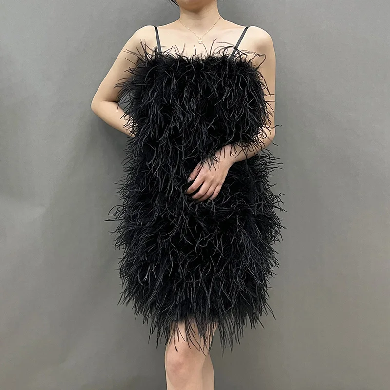 Product Name: Fashion Evening Fluffy Feather Dress Party Women Sexy Bodycon Ostrich Feathers Dress