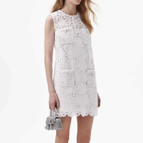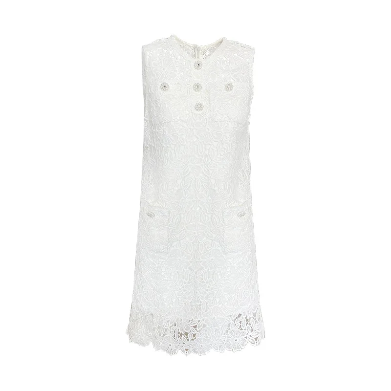 Product Name: Fashion Party Elegant Casual Dresses 2024 Early Fall New White Dress Floral Lace Diamond Sleeveless Women’s Dresses
