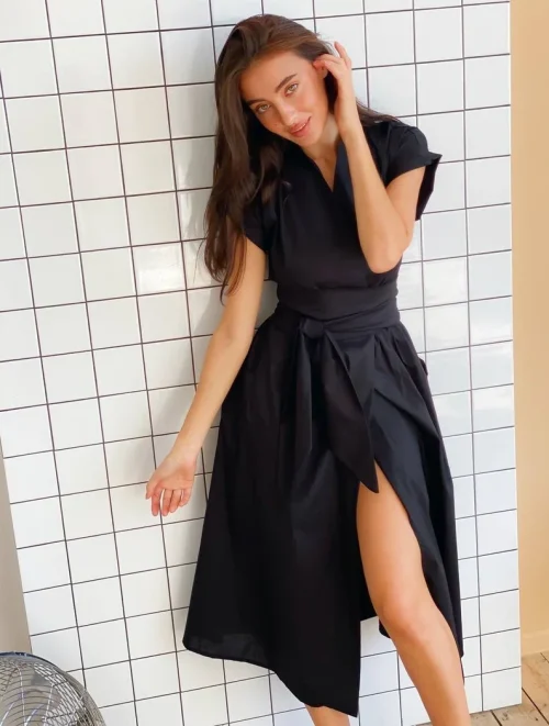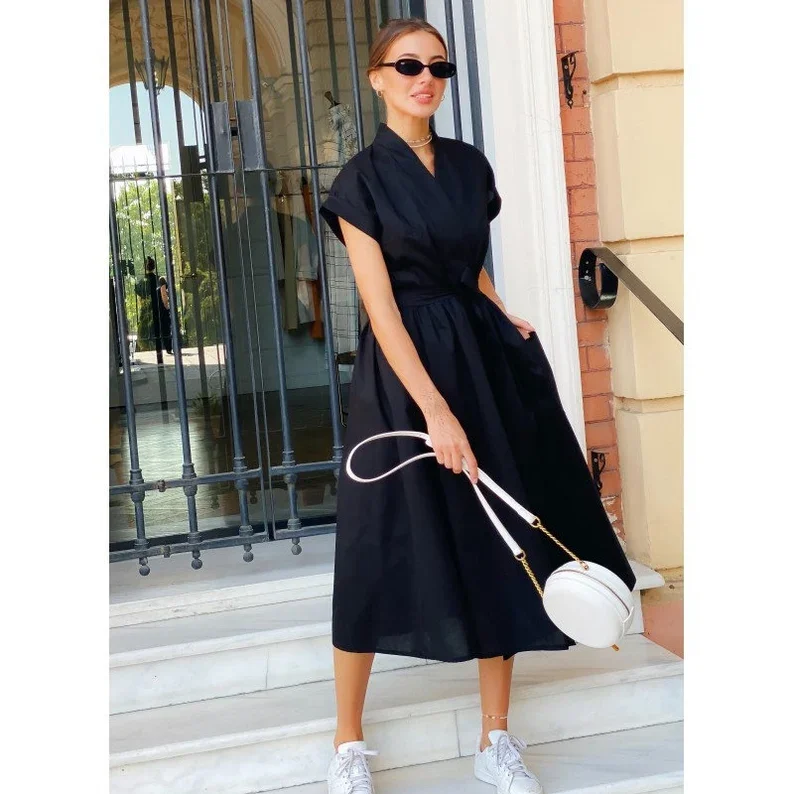 Fashion Plus Size Solid Wrap Dresses for Ladies Women’s Casual Dresses Elegant Breathable Spring Season