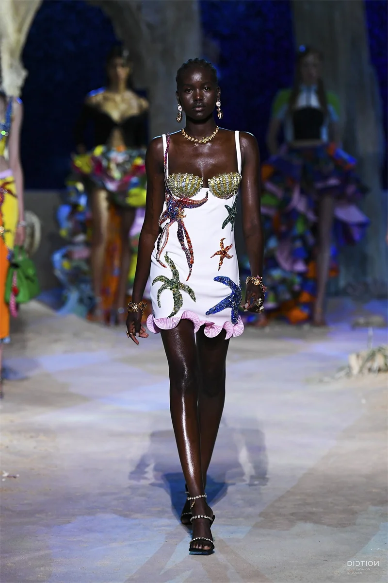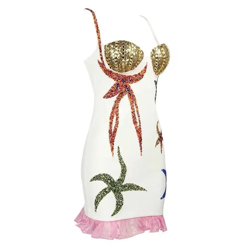 Product Name: FD2254 Quality Clothing Brands Ruffles Sequined Diamonds Handmade Beaded Dress Runway Fashion Women Sundress